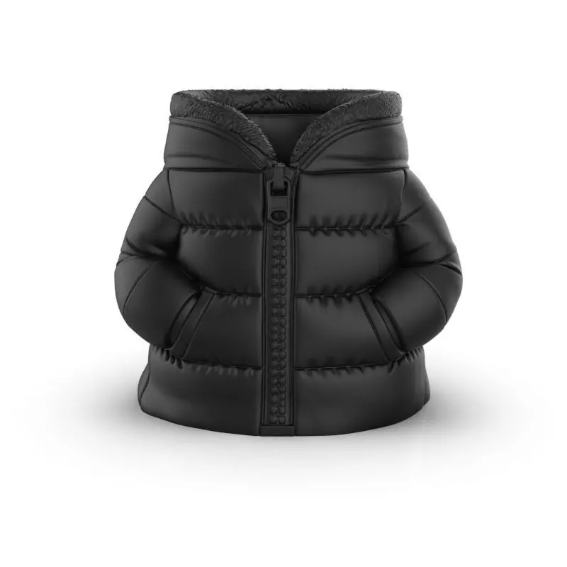 Design ConceptThe design mimics a cozy, warm jacket, appealing to young girls with its fashionable and functional aesthetic. It's designed not only as a pen holder but as a decorative piece on a study desk.