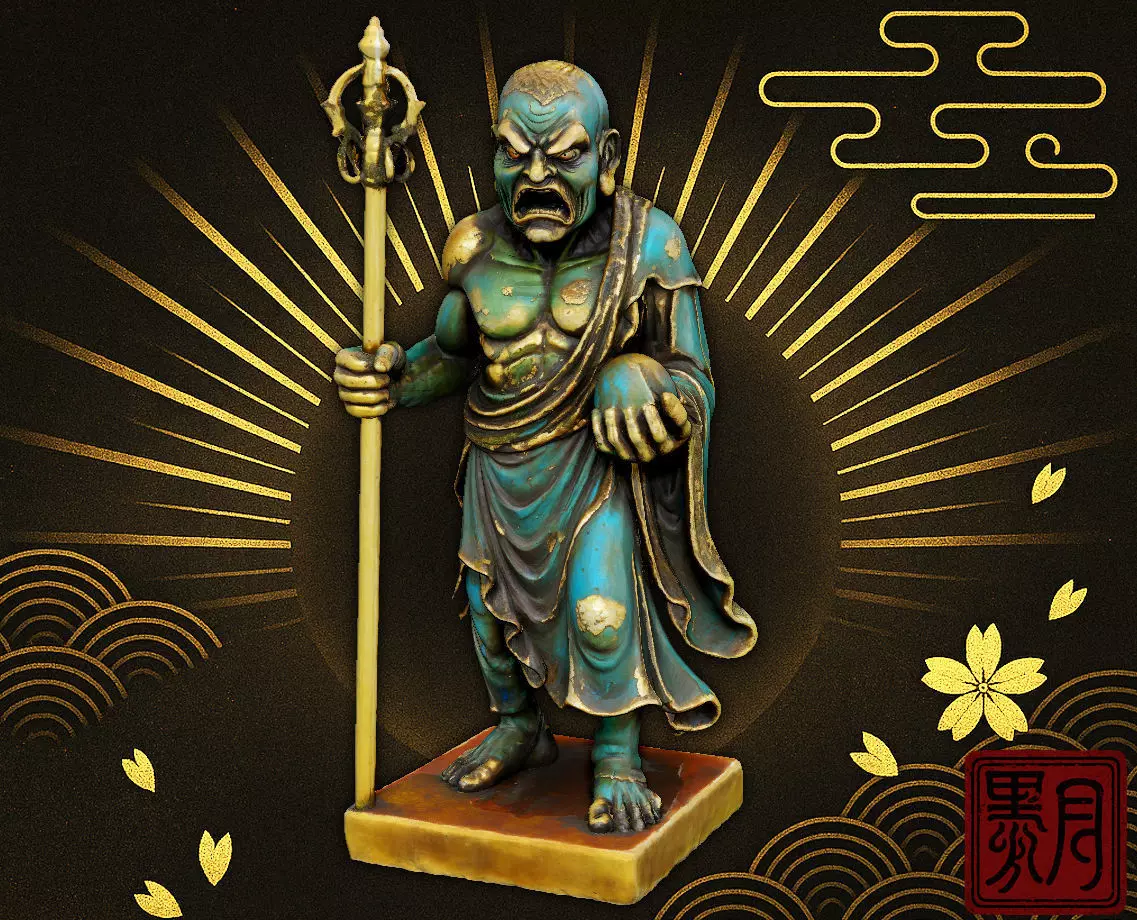 This is a detailed 3D model of an Angry Jizo (怒り地蔵), a stylized interpretation of the Buddhist guardian statue with a fierce expression.
