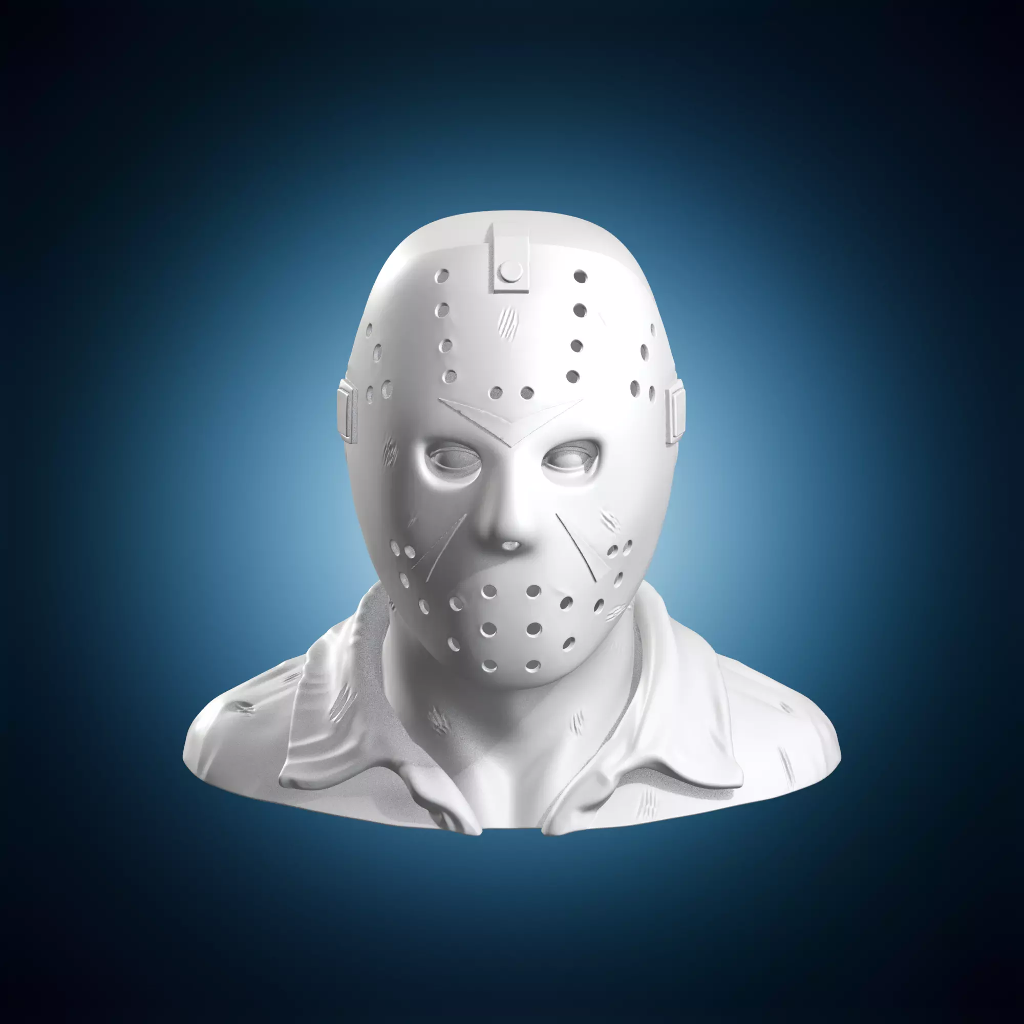 A detailed 3D model of Jason Voorhees' iconic hockey mask and bust, suitable for gaming, animation, or creative projects. This detailed 3D model is designed to be used in various applications, including computer-aided design (CAD), 3D printing, and video game development.