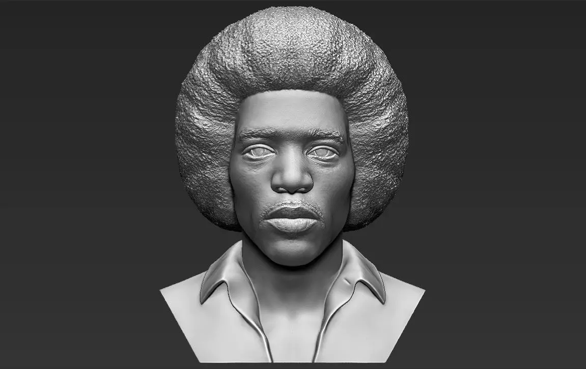Here is Jimi Hendrix bust 3D model ready for 3D printing. The model current size is 5 cm height, but you are free to scale it. Zip file contains obj and stl. The model was created in ZBrush.