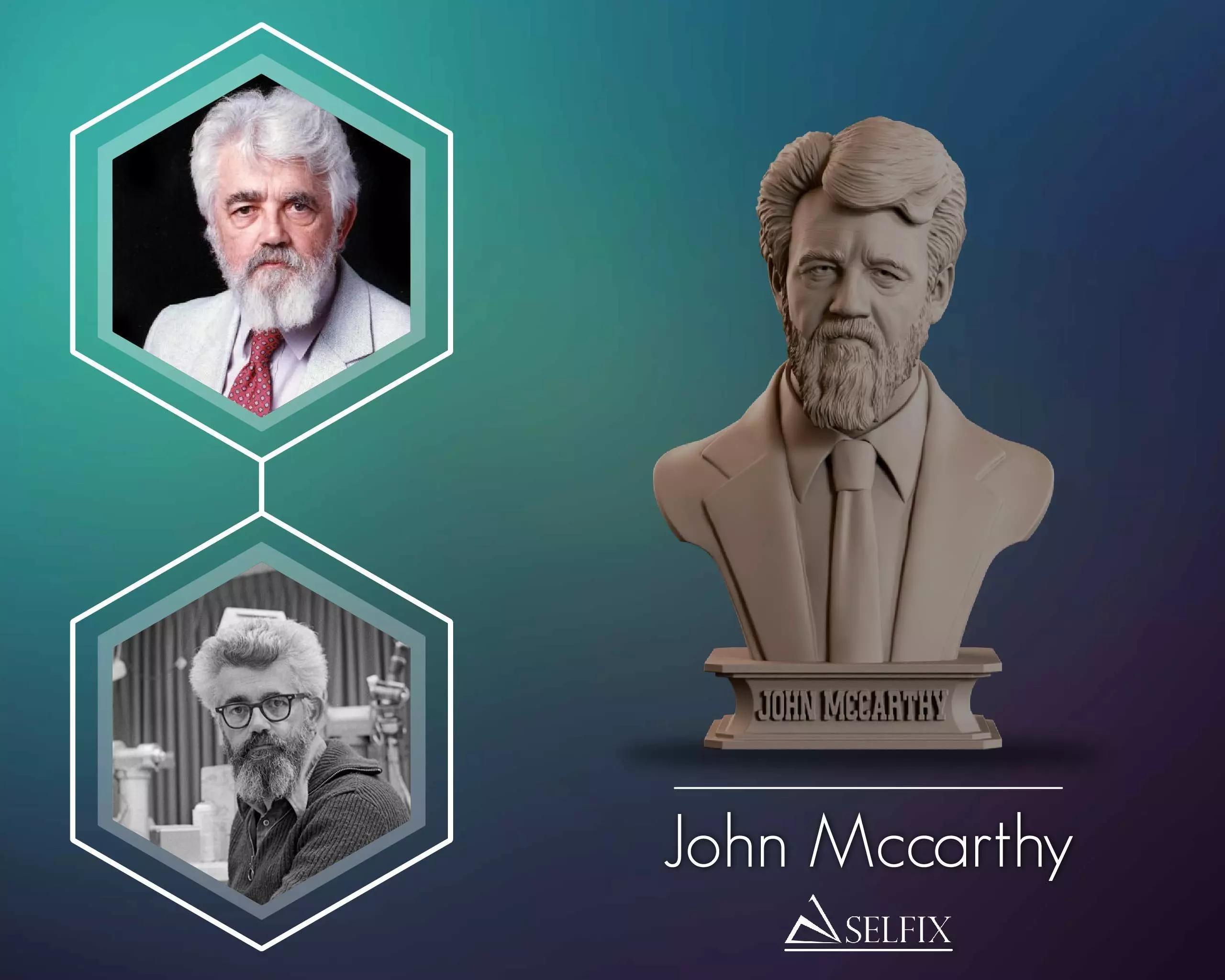 3D printable bust file of John McCarthy, honoring the computer scientist and cognitive pioneer who coined the term 'Artificial Intelligence.' This model pays tribute to the visionary mind that laid the groundwork for modern AI and computational reasoning.