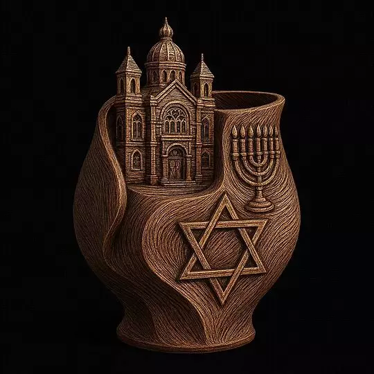 This is an Ai Generated non movable 3d model of a Judaism decorative holder inspired by Jewish festivals and religious celebrations. The design reflects traditional Judaic symbolism and cultural aesthetics making it suitable for festival decor educational projects heritage visualization and themed interior presentations.