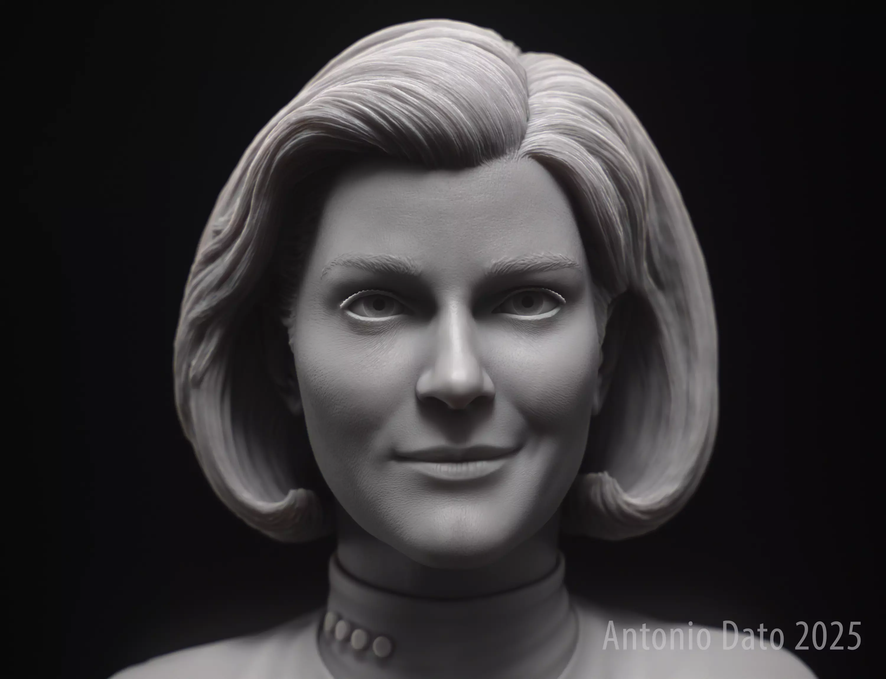 Highly detailed 3d printable bust of Kate Mulgrew in the role of Kathryn Janeway, Captain of the starship USS Voyager (NCC-74656) as appear in the Star Trek: Voyager Series.