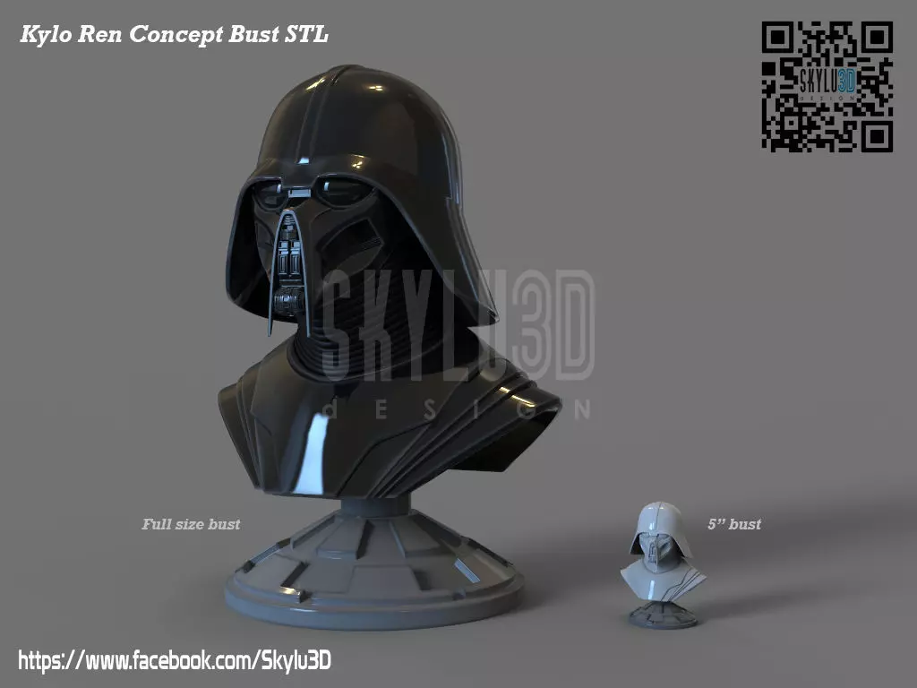 Kylo Ren Concept Wearable helmet with Bust Display 3D print model