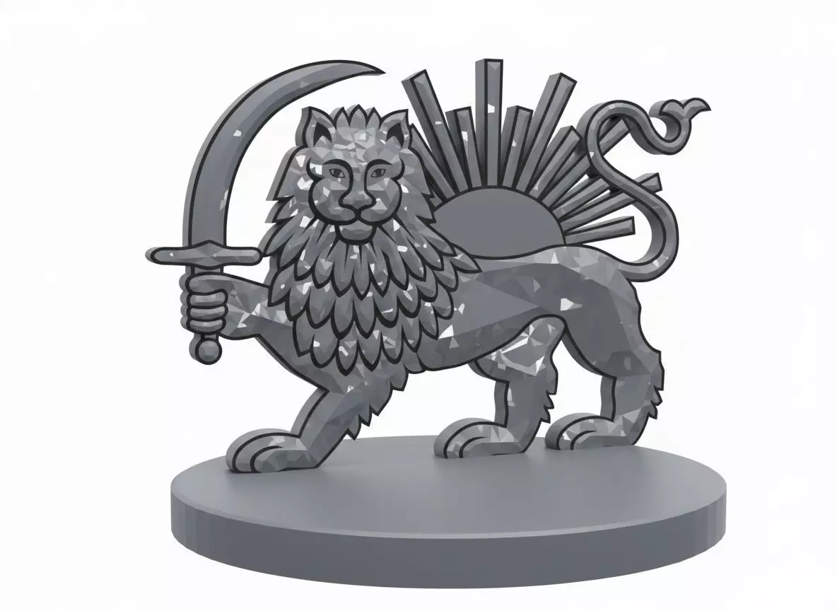 This 3d model represents the historic Lion and Sun emblem also known as Shir o Khorshid a powerful symbol of IranThe design shows a lion holding a sword facing a rising sun symbolizing strength heritage royalty and cultural identityThis decorative model is suitable for home decor cultural displays museums education visuals and artistic collectionsCreated using advanced AI based 3d modeling technology to ensure clean geometry balanced proportions and smooth surfacesIdeal for cgtrader users searching for national symbols historical emblems and premium decorative 3d assetsThe model is available in STL GLB FBX USDZ MP4 OBJ PNG GIF formats for broad compatibilityModel size can be adjusted easily and after resizing it is fully suitable for high quality 3d printing