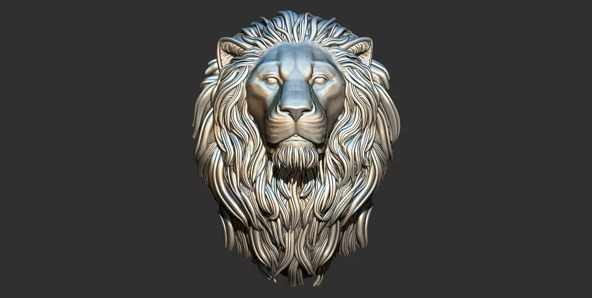 Keywords: lion head bas-relief, 3D printable model, CNC routing, wall art, furniture inlay, decorative sculpture, digital art, home decor, art, design, 3D model, download