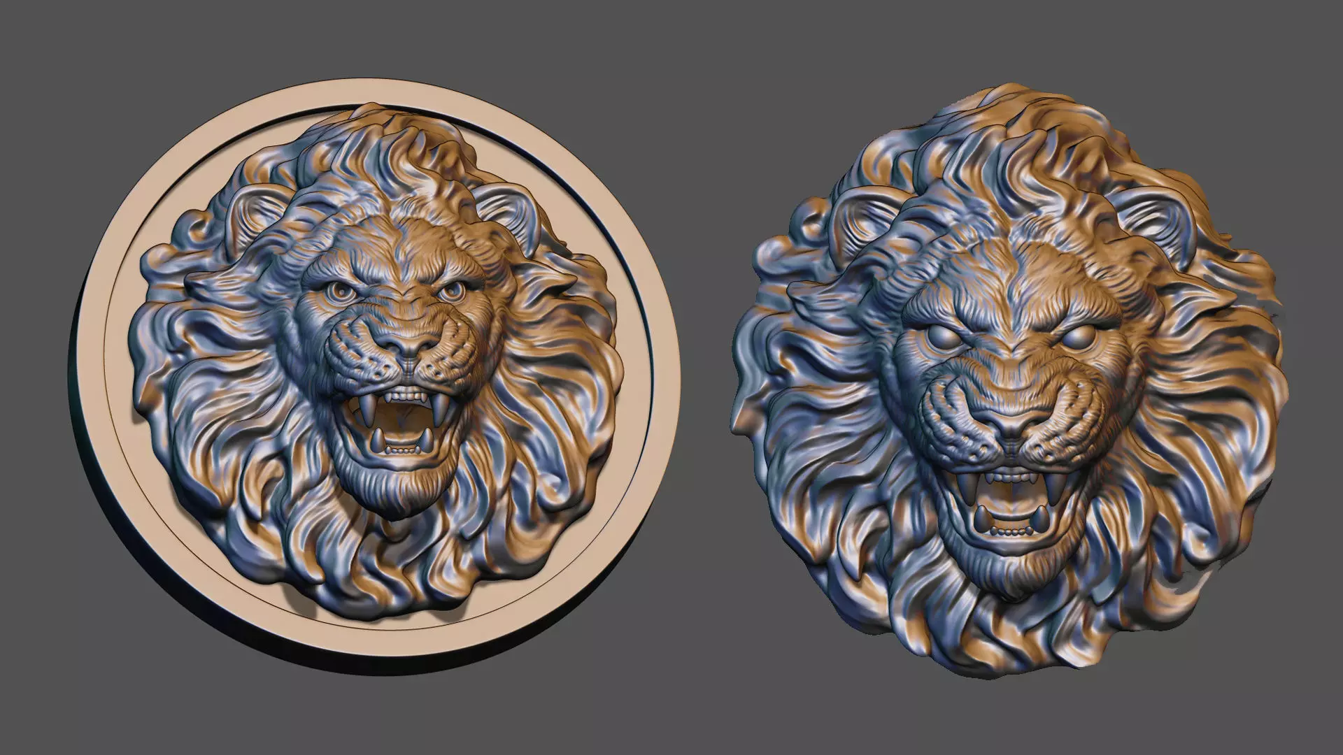 500К Merged Lion head on a Round base 500K Head Only (Flat back version without any base)500K Separated Lion head (With a square socket) + Separated Base (With a square peg)