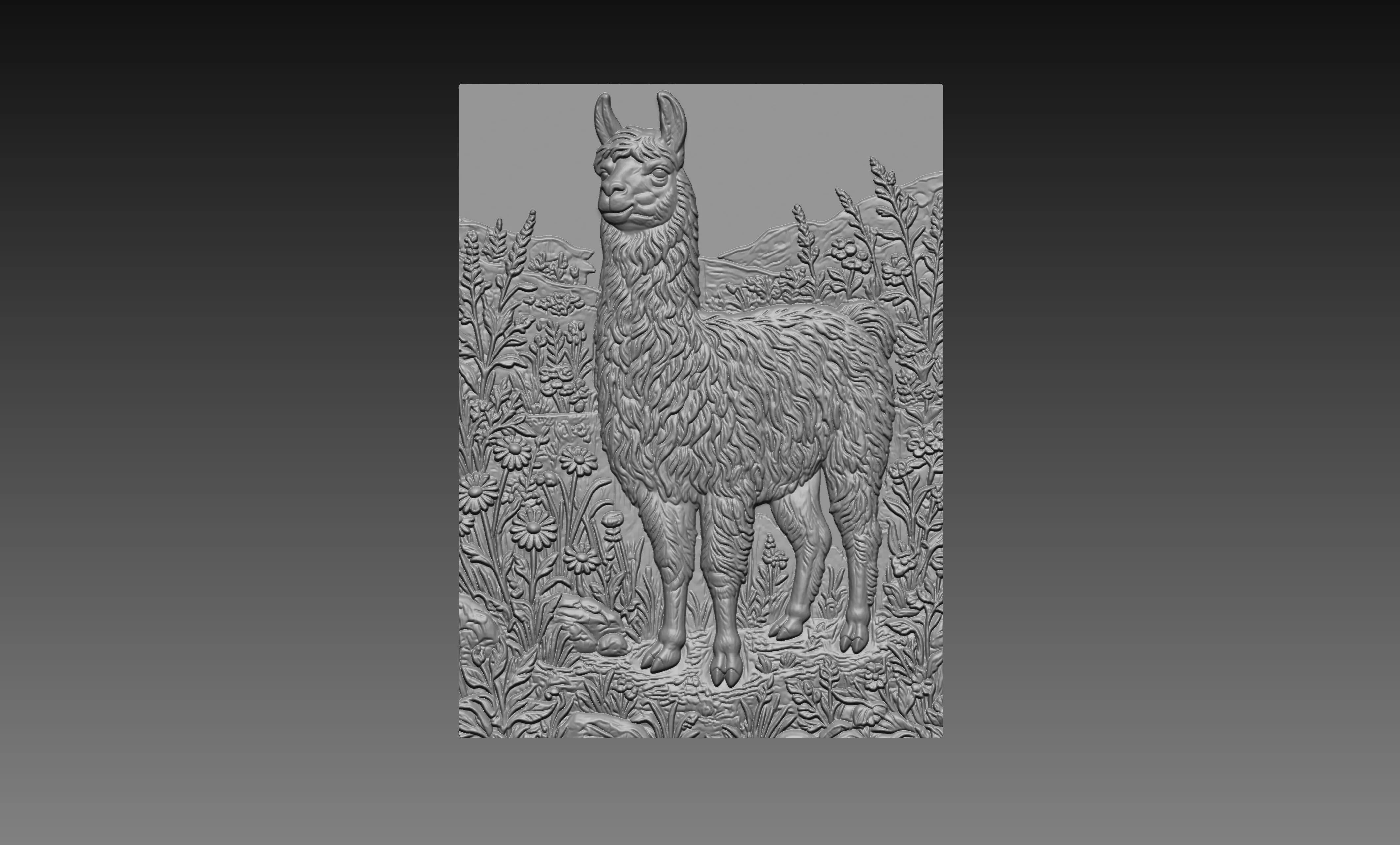 Designed with layered depth and fine detail, this llama relief model highlights soft fur texture, gentle posture, and flowing floral details—making it ideal for creating beautiful CNC carvings, wood panels, and 3D printing projects.