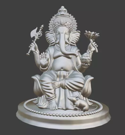 This 3D model represents Lord Ganesha, the beloved Hindu deity known as the remover of obstacles and bringer of wisdom and prosperity. The sculpture features finely detailed ornaments, a serene expression, and traditional iconography — ideal for devotional art, home temple décor, or collectible prints.
