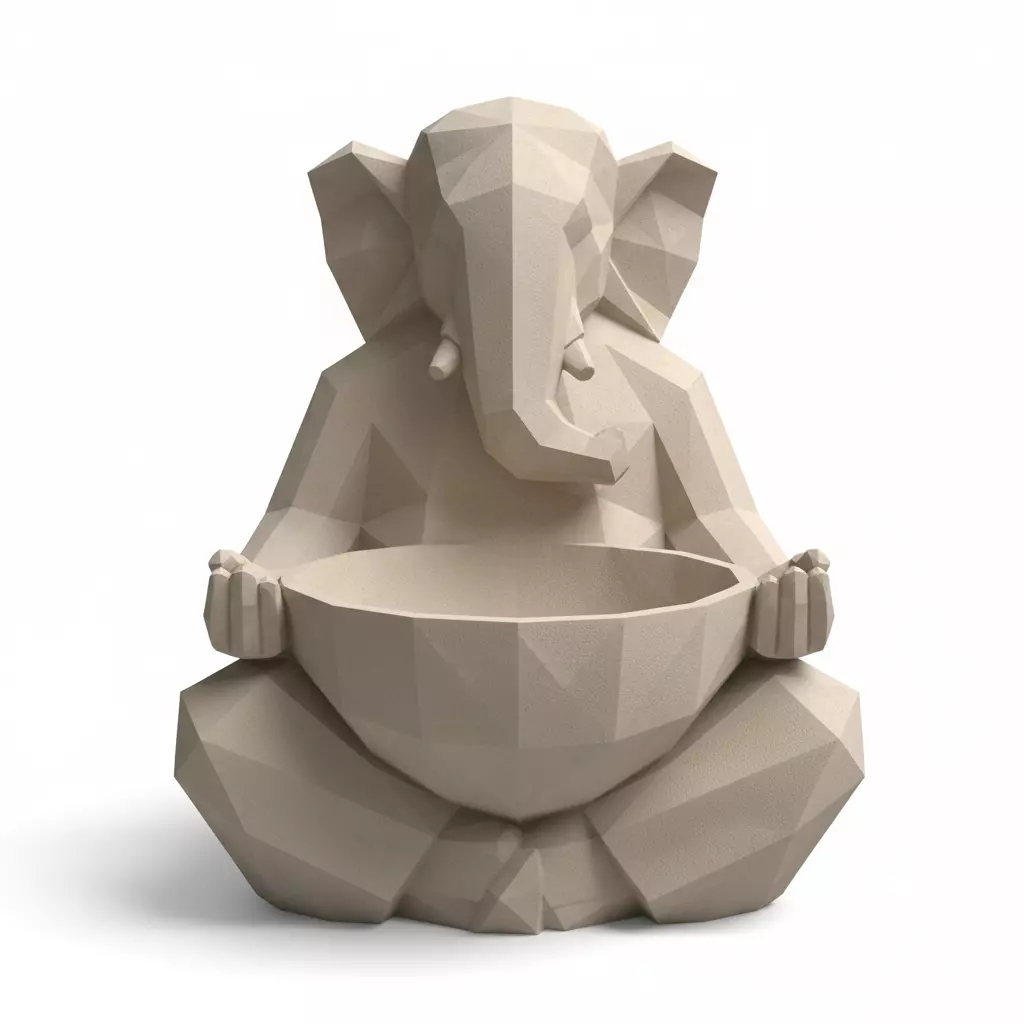 This high quality 3D model presents Lord Ganesha holding a decorative holder inspired by Hindu religious sculpture and spiritual symbolismThe model represents wisdom prosperity and devotion making it ideal for religious visualization temple decor cultural renders spiritual art AR VR scenes and product displayIt is created using advanced AI assisted 3D modeling techniques to deliver clean topology accurate proportions and refined sculptural detailThe asset supports full size adjustment and can be safely resized for 3D printing after proper scale customizationIncluded file formats are STL GLB FBX USDZ MP4 OBJ PNG GIF JPG ensuring broad compatibility with CGTrader Blender Unity Unreal Engine AR workflows and 3D printersAI driven optimization keeps the model efficient for real time rendering while maintaining spiritual detail and print ready quality