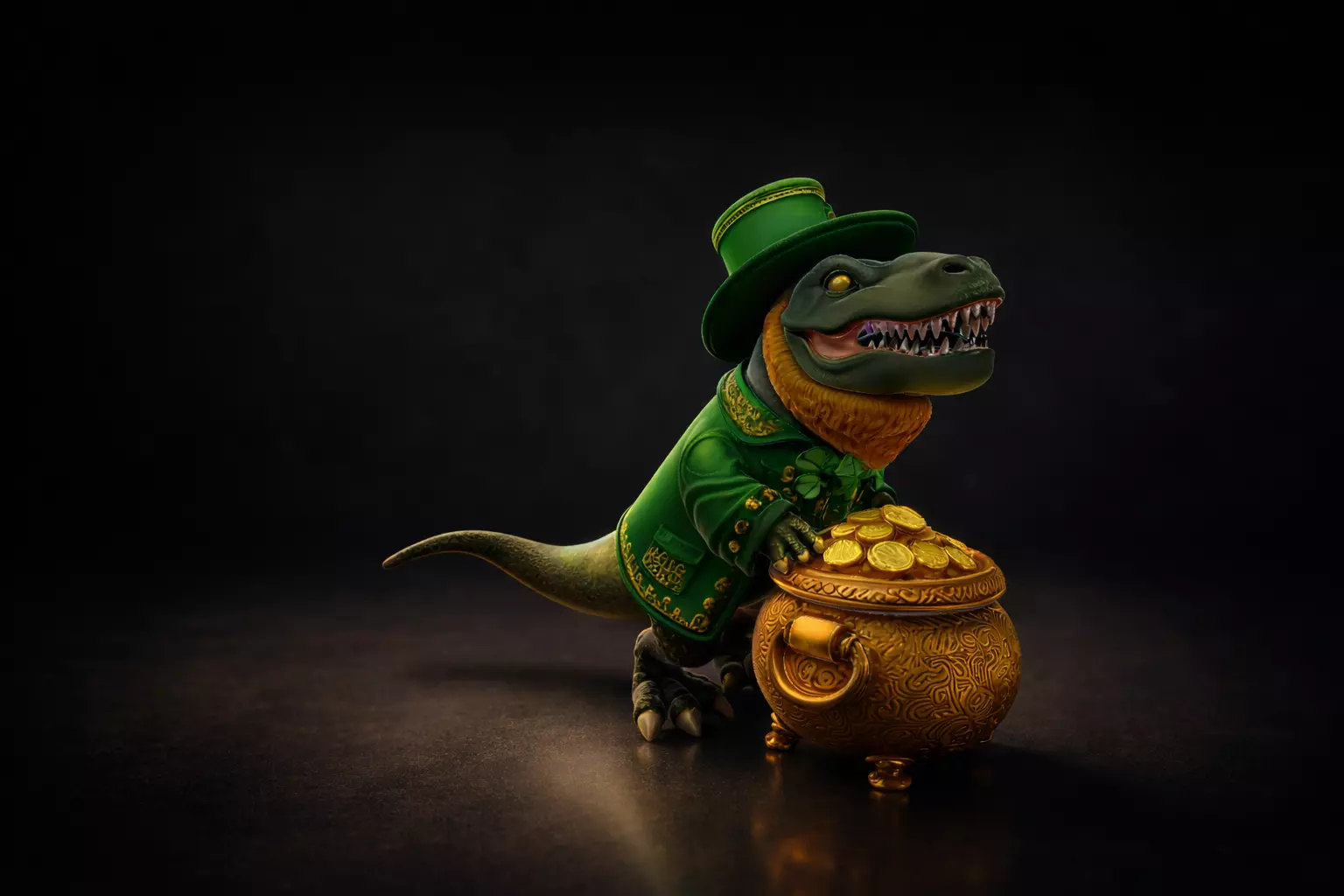 st patricks day decor , leprechaun dinosaur , lucky dinosaur , pot of gold decor , shamrock decoration , irish holiday decor , fantasy dinosaur model , cute dinosaur figurine , lucky charm gift , st patricks day gift , 3d printed decor , printable figurine , holiday party decor , irish themed gift , whimsical dinosaur , green holiday decor , collectible dinosaur , festive home decor , mythical creature decor , lucky leprechaun gift