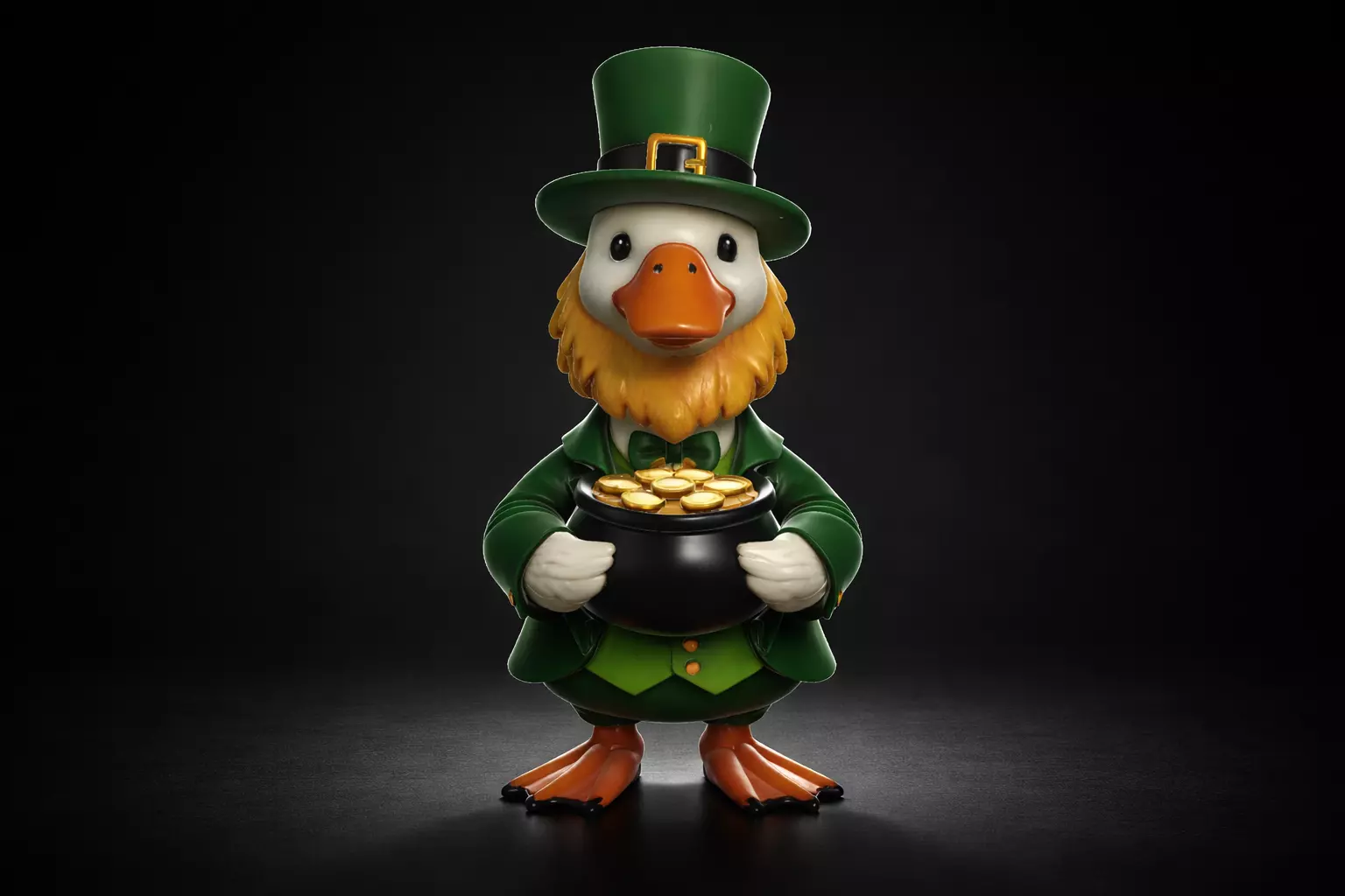 lucky duck figurine , leprechaun duck decor , pot of gold statue , saint patricks decor , irish lucky charm , cute duck model , fantasy duck figure , green leprechaun gift , shamrock holiday decor , lucky charm figurine , duck lover gift idea , whimsical desk decor , festive holiday figure , collectible duck statue , st patricks gift , lucky gold decoration , cute animal figurine , themed party decor , magical duck ornament , irish festival decor