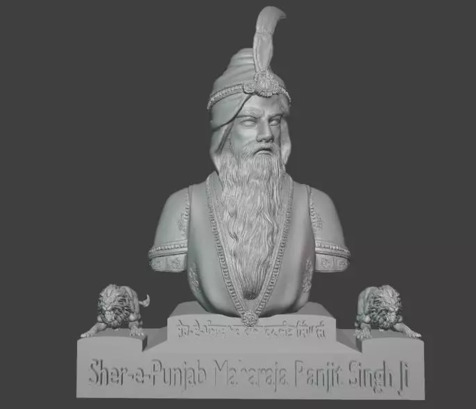 Highly detailed 3D model of Maharaja Ranjit Singh Ji, featuring traditional attire, turban with plume, and majestic lion sculptures. This model represents the pride of the Sikh Empire and is perfect for 3D printing, miniature collections, historical displays, and cultural art projects. Ideal for admirers of Indian history, Sikh warriors, and heritage art from Punjab.