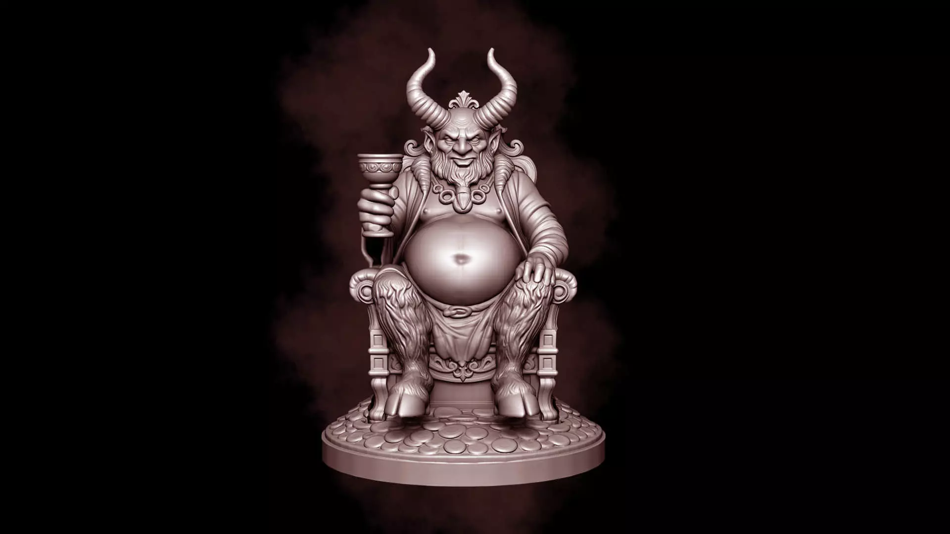 Exported in OBJ and STL (120mm)2 parts: Base and Mammon sitting in the armchair