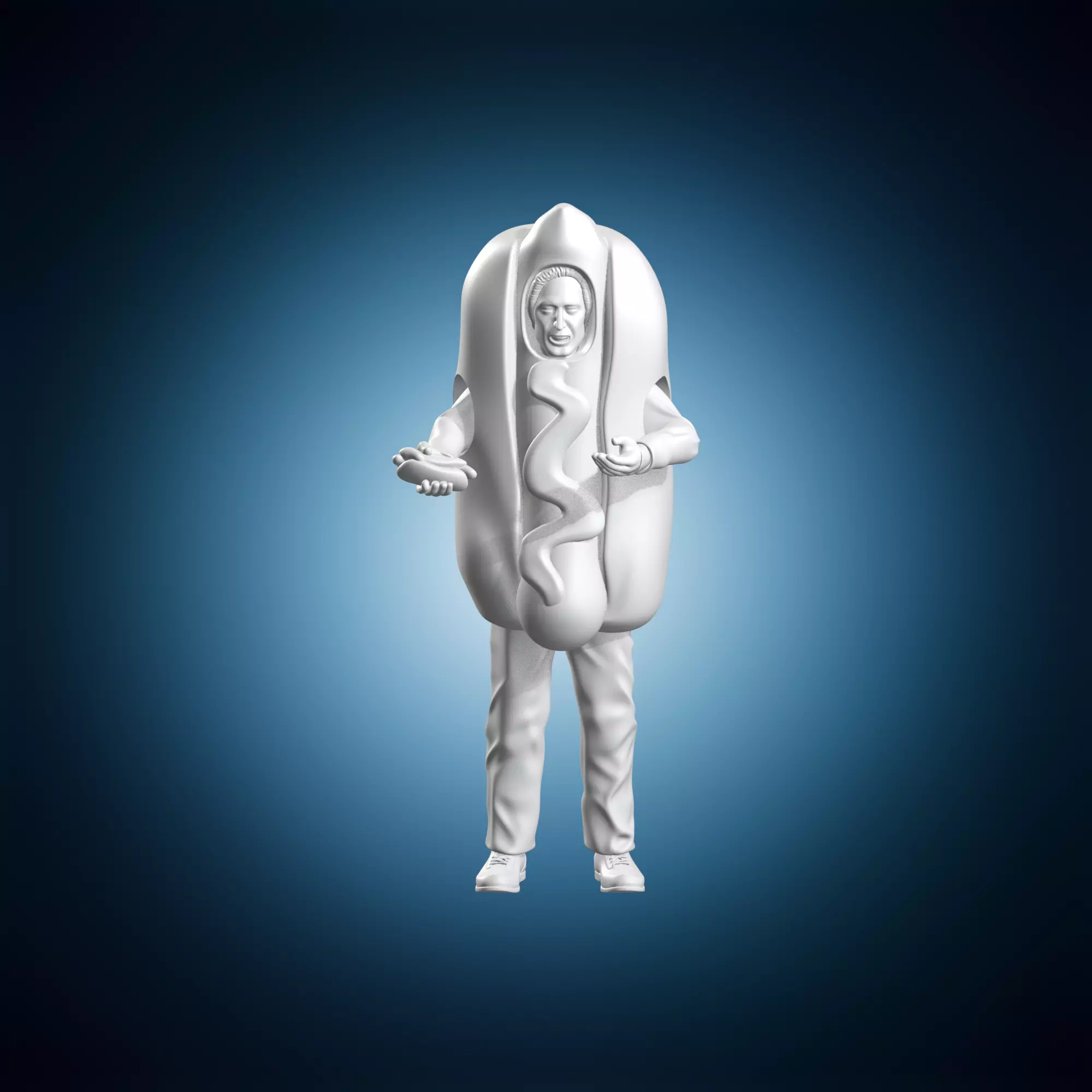 A unique and quirky figurine of a man wearing a hot dog costume. This collectible piece is perfect for fans of pop culture and nostalgia. The model features intricate details and textures, making it a great addition to any display case. Whether you're looking to add some humor or whimsy to your decor, this figurine is sure to bring a smile. With its compact size and detailed design, it's an ideal choice for shelves or tables. Bring home this fun and playful collectible today!