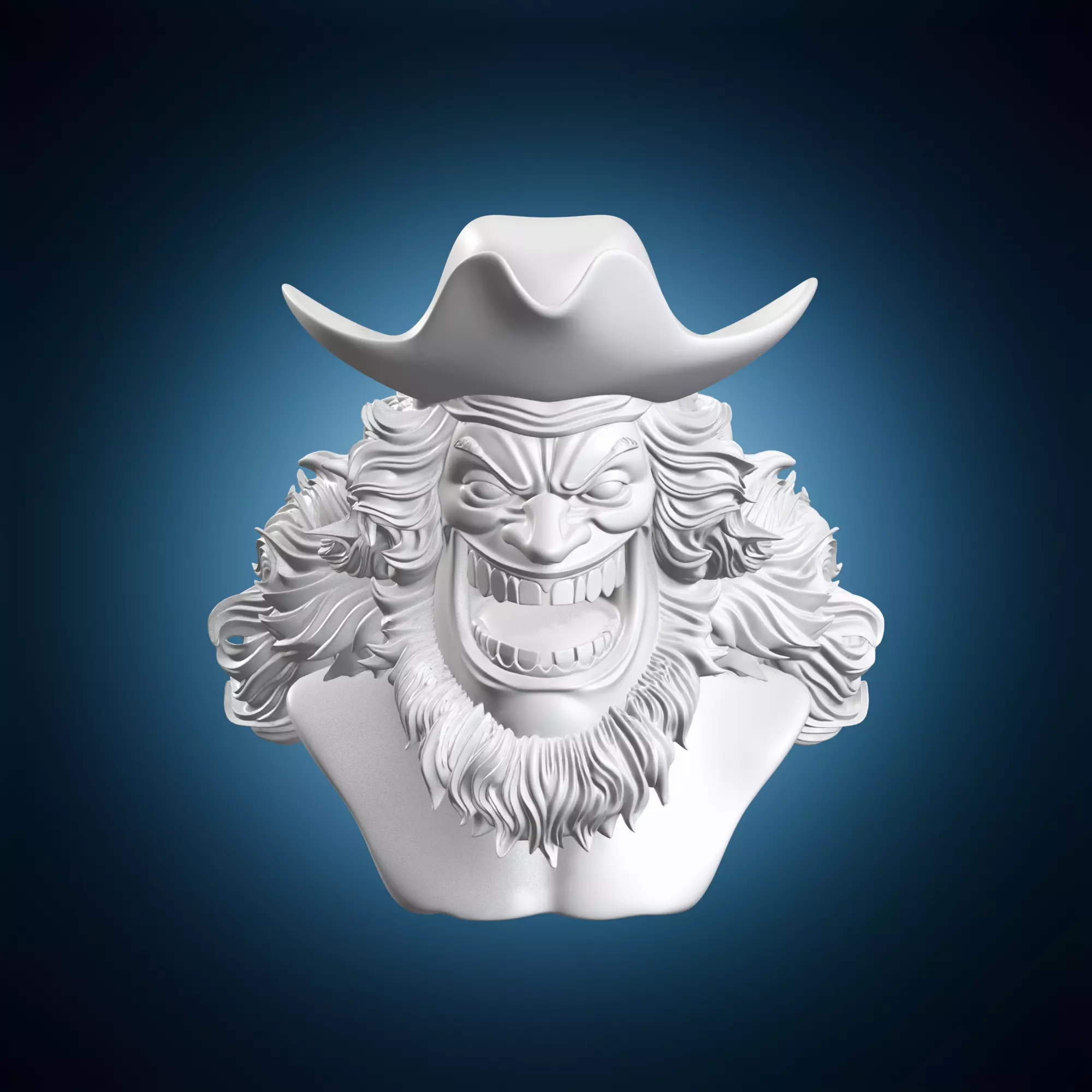 A highly detailed 3D model of a bust from the popular anime and manga series 'One Piece'. This model features Marshall D Teach in a realistic pose. The model is suitable for use in various applications, such as animation, video games, or architectural visualizations. It can be used to create realistic character models or to populate virtual environments with authentic details. This 3D model has been carefully crafted to accurately represent the characters and their facial expressions, making it an excellent choice for artists and designers. Suitable for use in Blender, Maya, or other 3D modeling software.