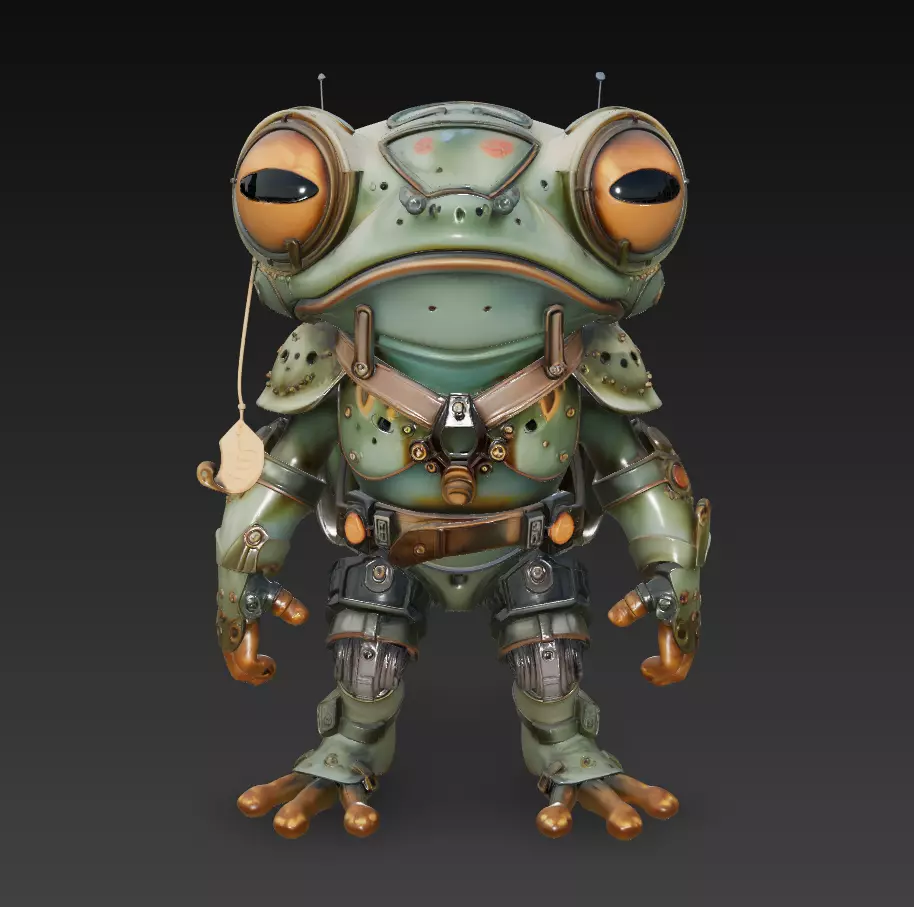 The Mecha Frog Ranger is a stylized robotic amphibian character designed with expressive proportions, detailed mech plating, and high-quality hard-surface elements.Its oversized eyes, armored torso, mechanical limbs, and tactical gear give it a unique personality — perfect for CGI animation, stylized games, collectibles, or 3D printing.