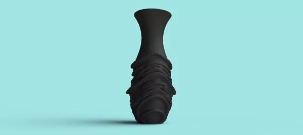 Enhance your interior visualizations with this striking contemporary vase. Featuring a sleek, elegant neck and a base wrapped in an organic fluid flow texture, this model perfectly balances minimalist design with artistic complexity. The matte black finish provides a sophisticated, non-reflective surface that adds a premium feel to any modern or luxury interior scene.