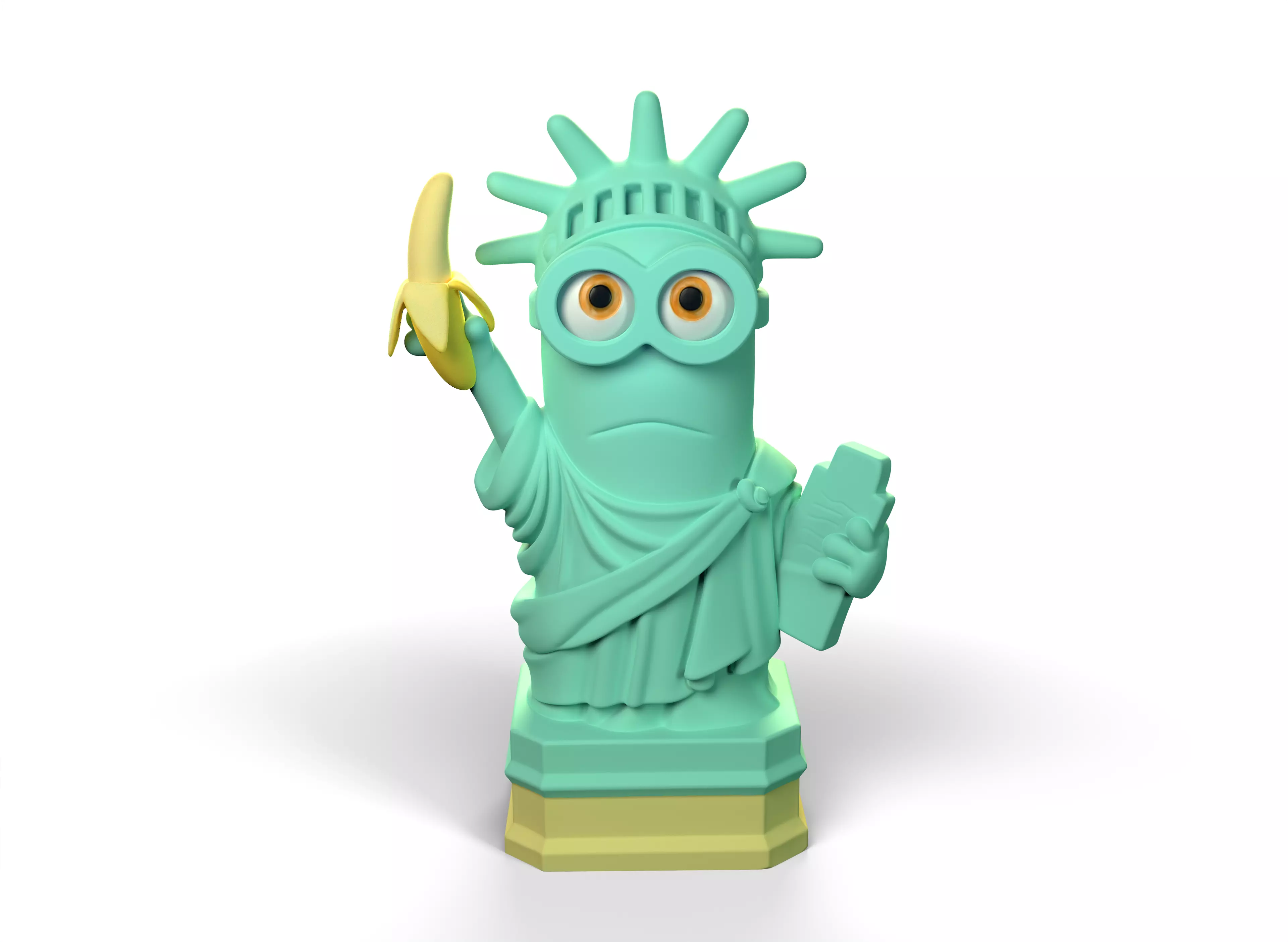 A minion model in the form of the Statue of Liberty with a banana in his hands.
