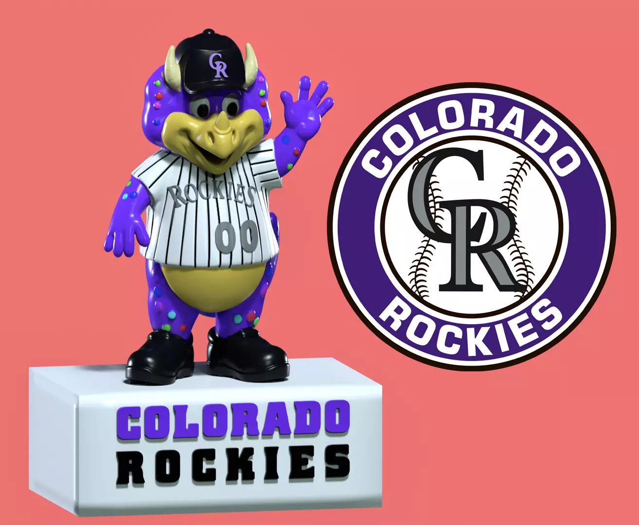 Dinger, the Rockies Mascot, is based off of a triceratops – an herbivore dinosaur species that certainly lived in the area, as evidenced by the several triceratops fossils found in the region.This awesome print is great for display!