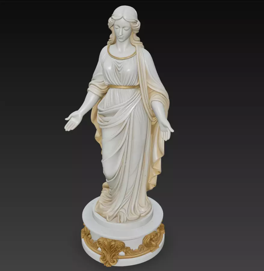The Divine Elegance – Virgin Mary Sculpture 3D Model is a refined representation of divine beauty and serenity. Crafted in white marble tones with gentle golden ornamentation, this piece reflects the essence of faith, purity, and classical artistry.