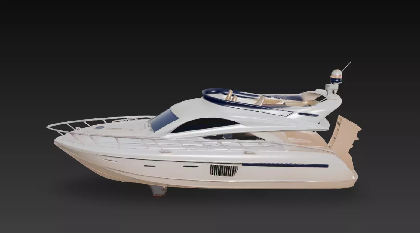This Modern Luxury Motor Yacht Cabin Cruiser 3D Model features a sleek and aerodynamic hull design combined with elegant cabin proportions and contemporary marine styling.The model reflects high-end leisure yacht aesthetics, making it ideal for luxury visualization, coastal environments, marina scenes, and cinematic renders.