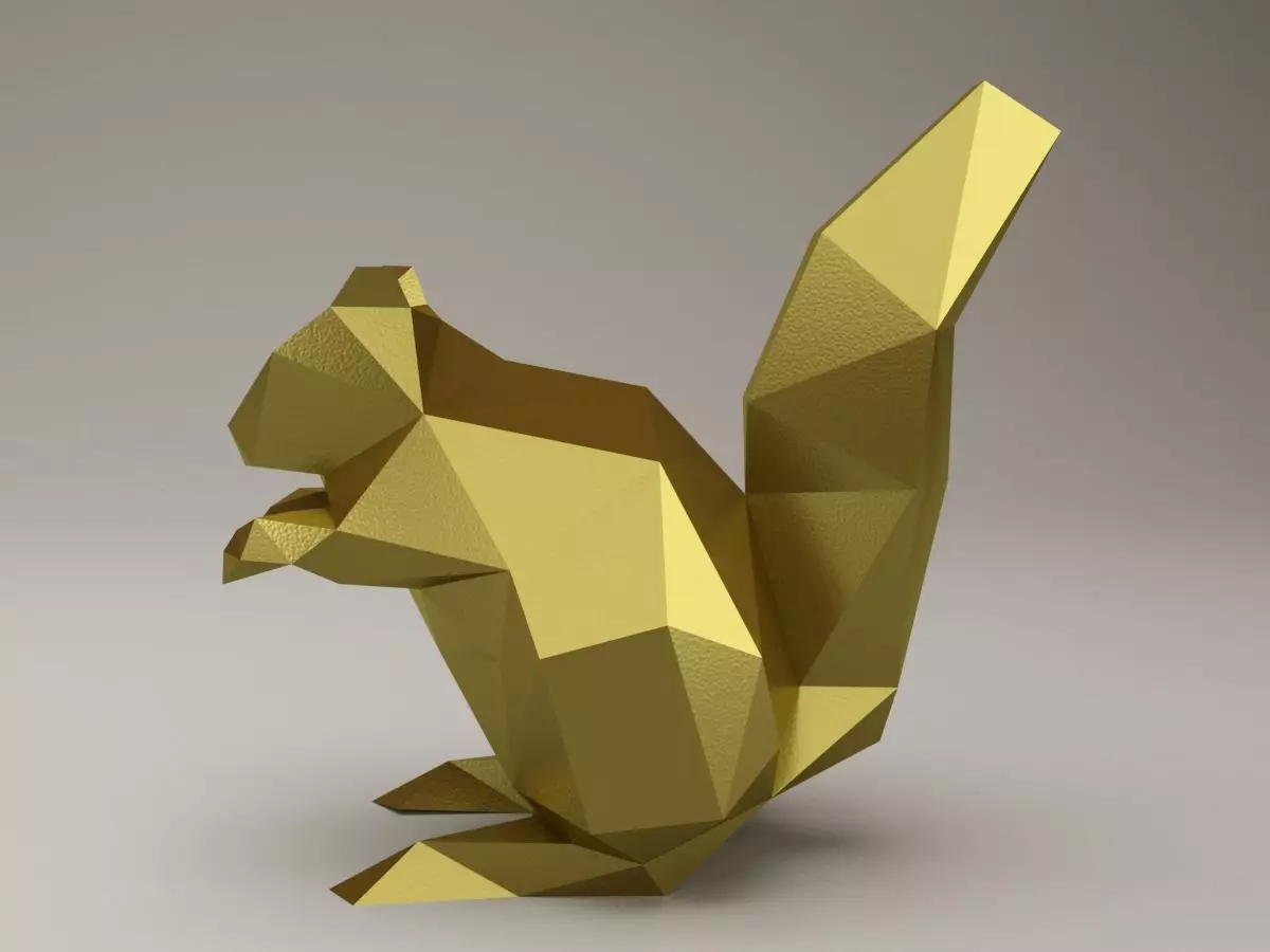 Modern Animals Sculpture Series This is a 3d print model of a sculpture of a Squirrel. It has two types, one with a stand, one without. Using a stone-like PLA (for statue-like feel) or using metal (to highlight the low poly structure) is highly recommended. The models fit in 100.100.100 mm3 box (with or without stand).