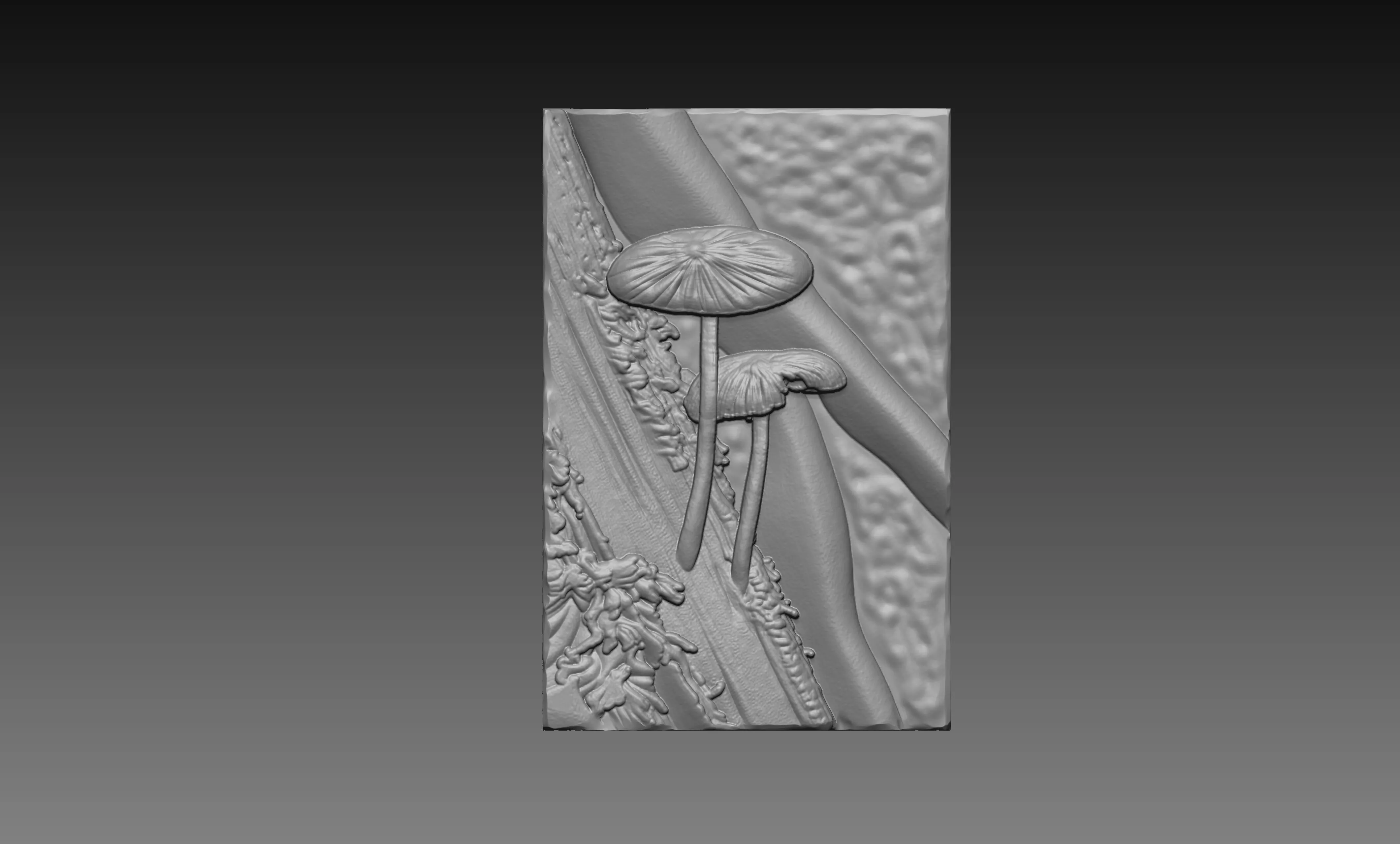Designed with fine detail and layered depth, this mushroom relief model highlights the slender stems, small caps, and natural textures of the branch—perfect for creating elegant CNC carvings, wood panels, and 3D prints.