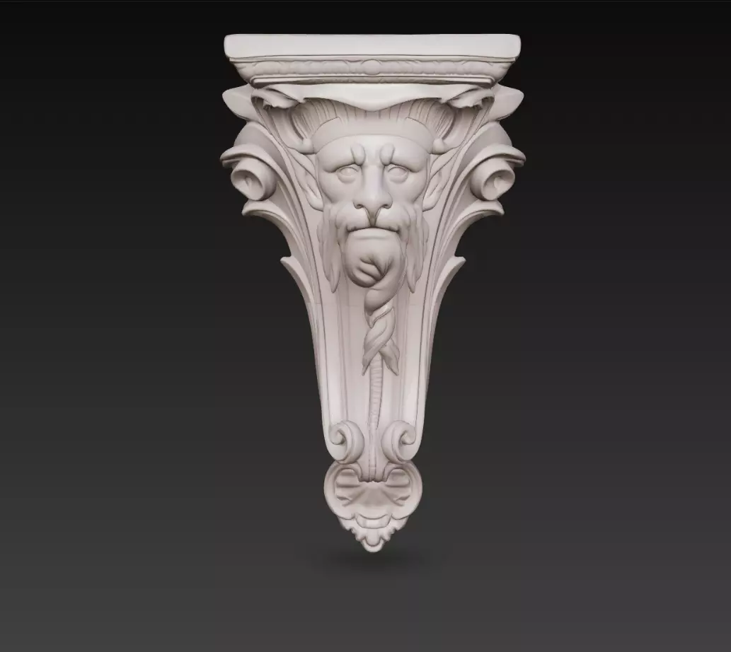 This Mythological Face Wall Bracket 3D Model features a highly detailed decorative corbel inspired by classical and gothic architectural design.