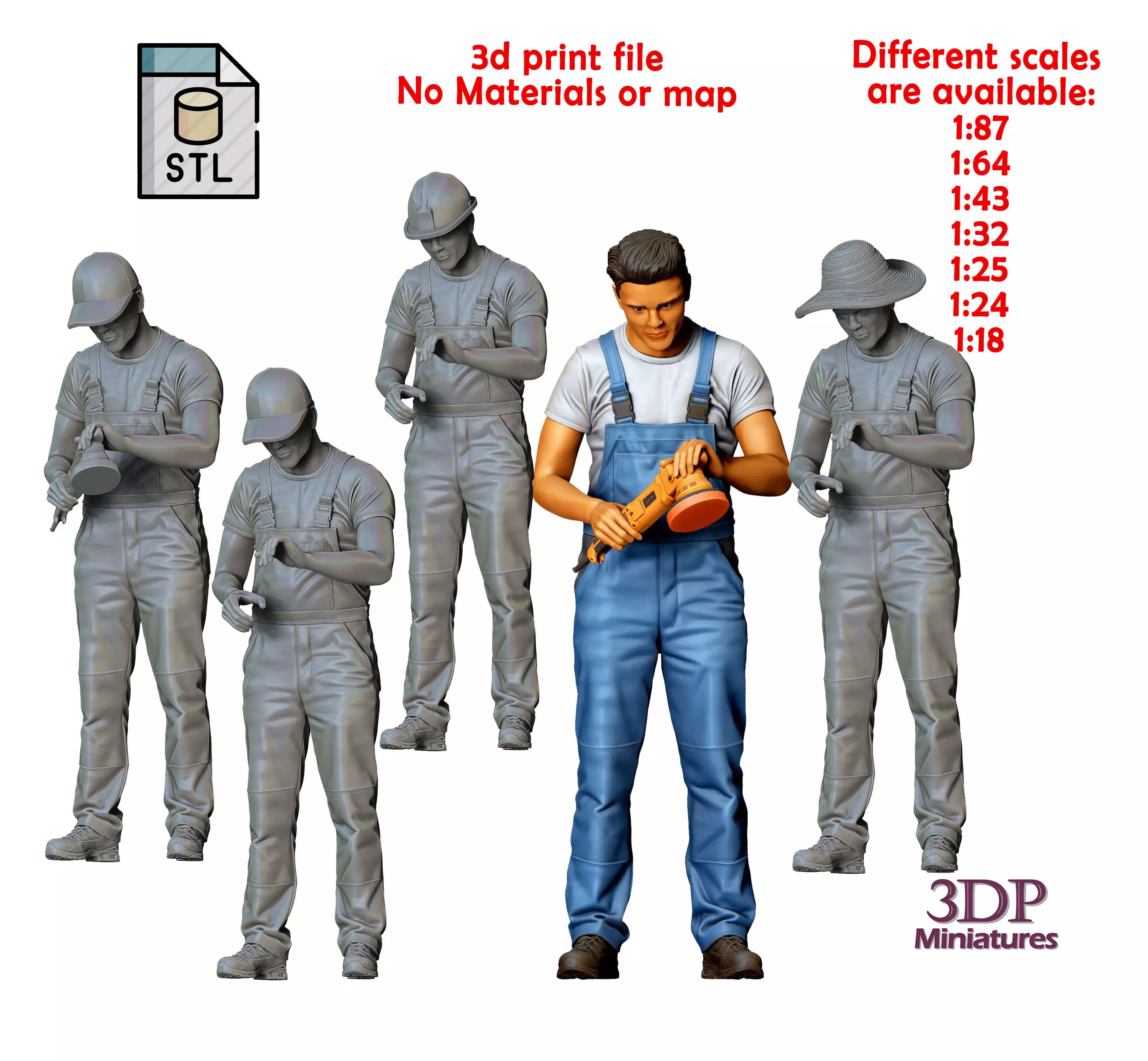miniature, 3d-print, miniatures, Figurines, 3dp-Miniatures, Diorama, Figurine, Diecast, 3d-print-figures, 3dpminiatures, Patreon, standing, worker, Auto-body-repair, Mechanic, polisher, farmer, construction-worker, car, Carwash-worker
