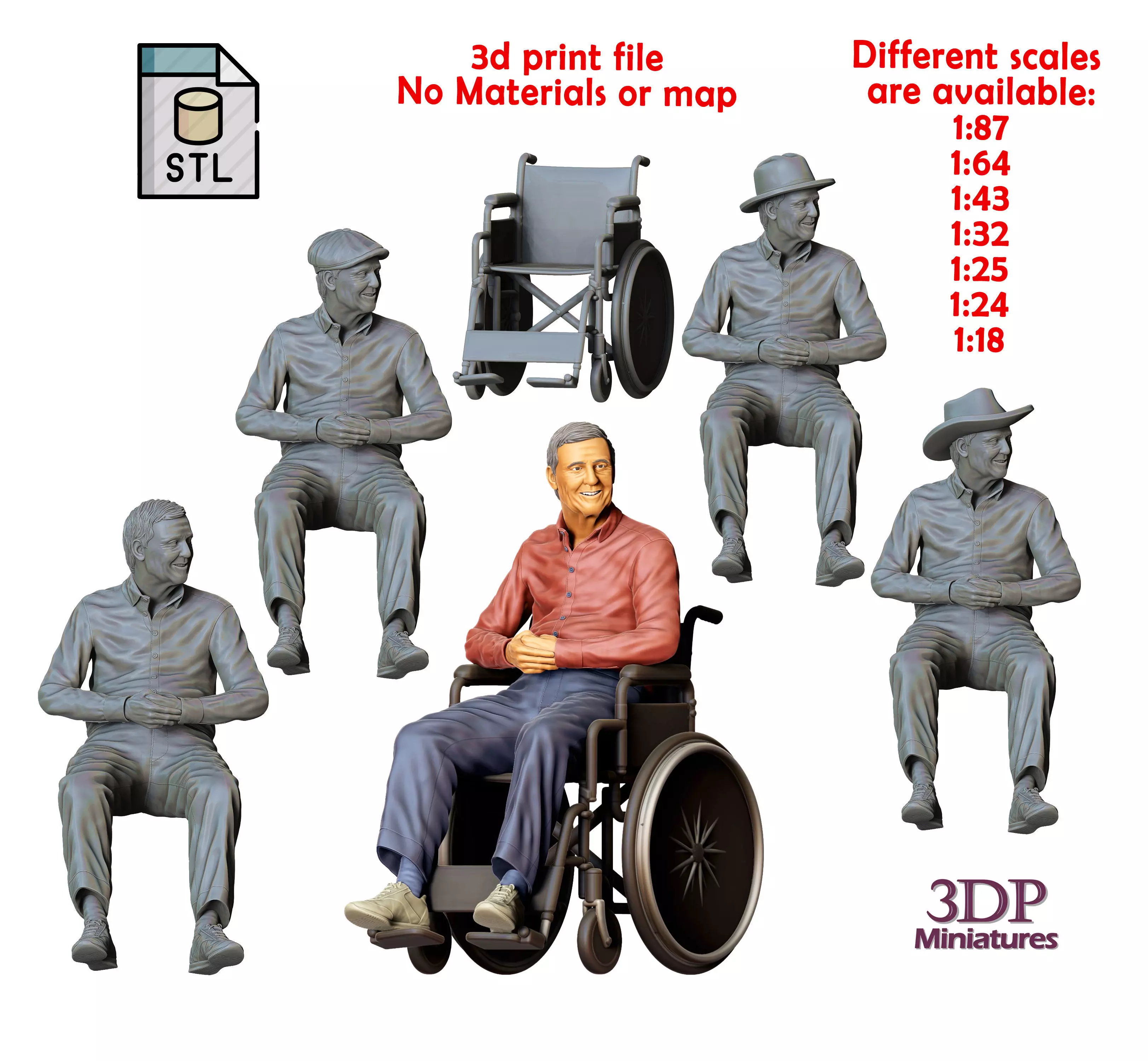 miniature, 3d-print, miniatures, Figurines, 3dp-Miniatures, Diorama, Figurine, Diecast, 3d-print-figures, 3dpminiatures, Patreon, old-man, sitting, wheelchair, disabled, disabled-person