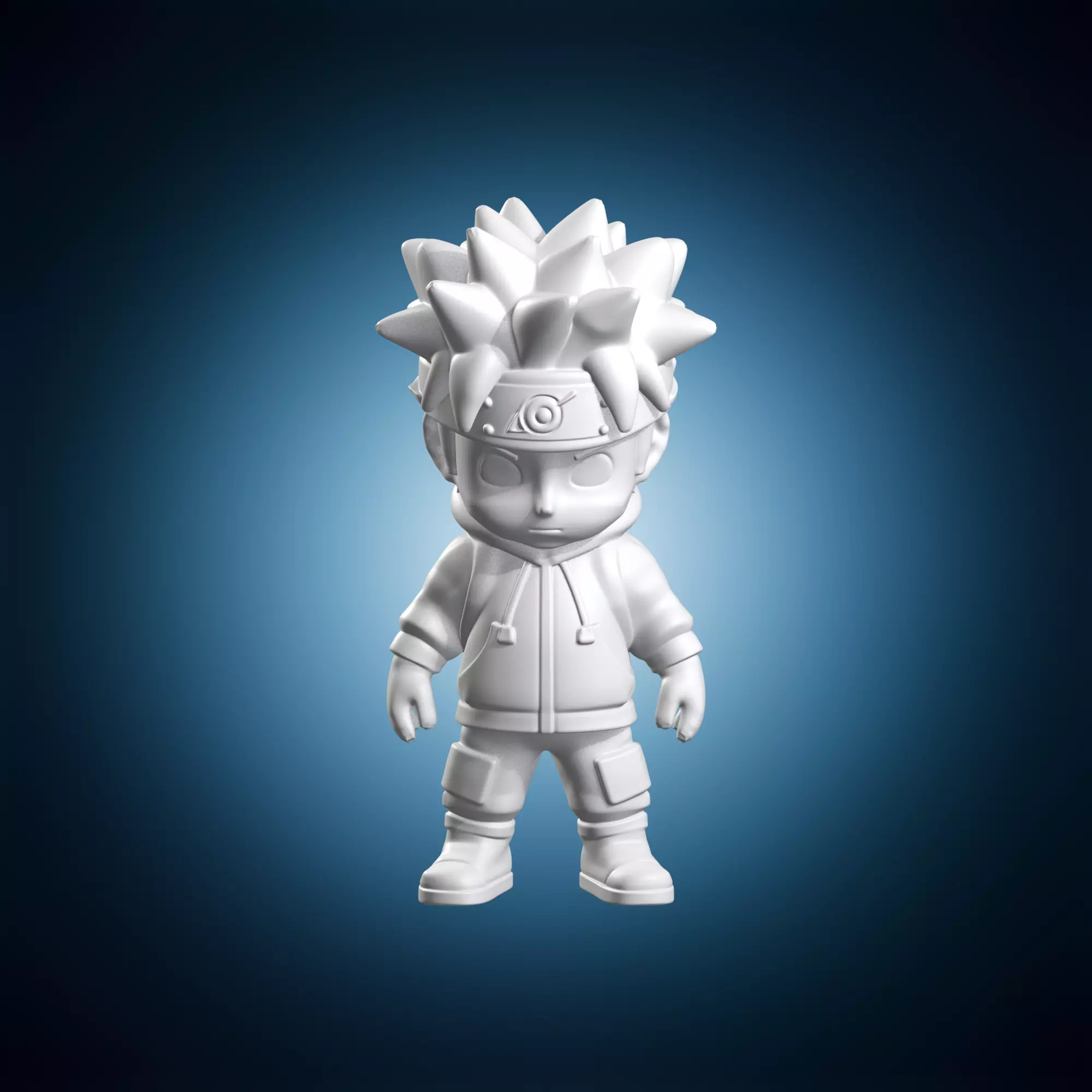 A 3D model of Naruto Uzumaki in chibi anime style, ideal for gaming or collecting. This character model is highly detailed and includes various accessories. Use this model to create your own anime-inspired characters or scenes. It's perfect for artists, animators, or fans of the Naruto series.