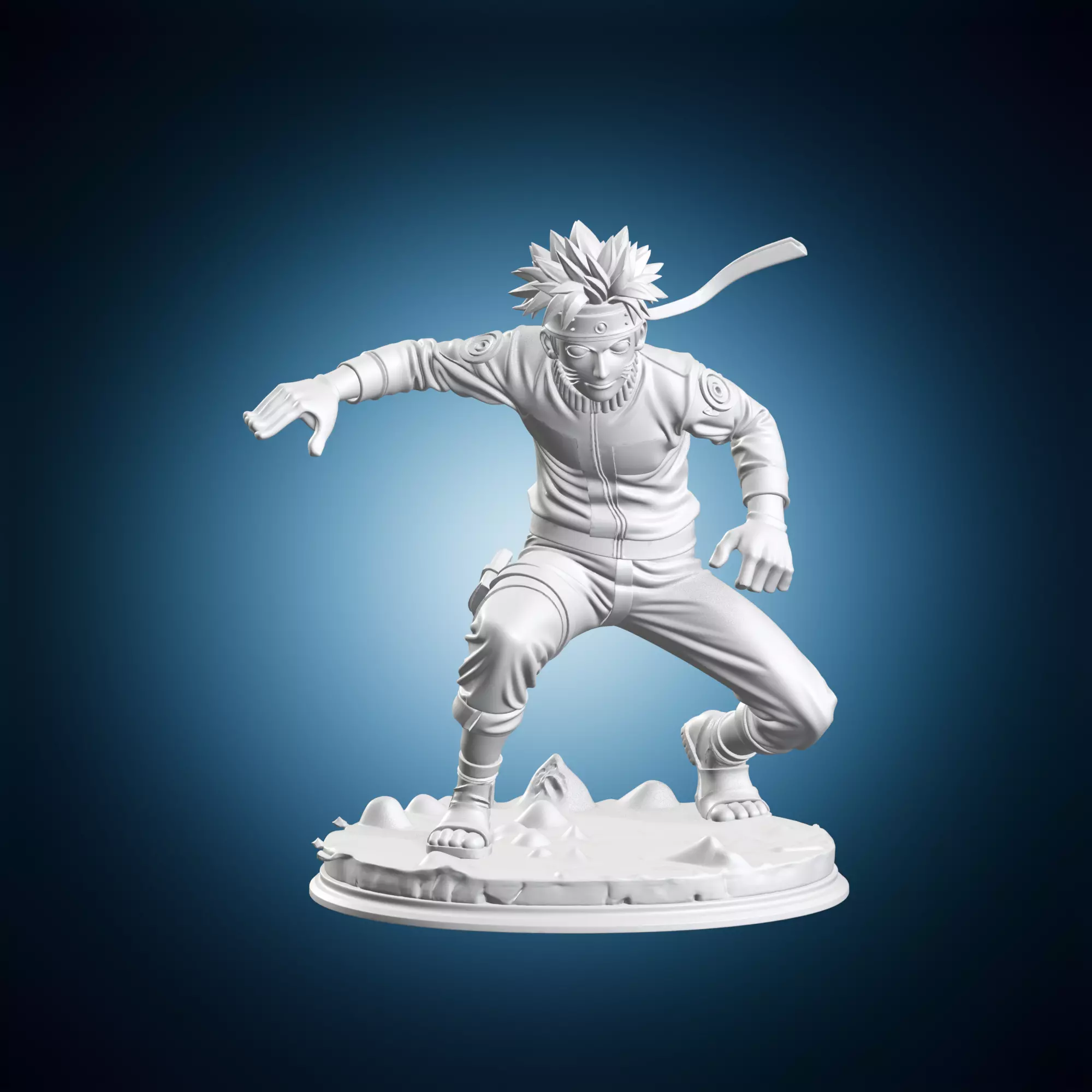 A detailed 3D model of Naruto Uzumaki in an action pose as a statue. This model is suitable for use in various applications such as gaming, animation, and special effects. It features intricate details and textures that capture the character's dynamic personality. The model is optimized for efficient rendering and can be used to create stunning visual effects. Suitable for creators working on Naruto Uzumaki projects or fans looking to add a touch of realism to their own creations.