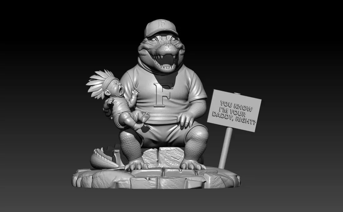 Funny Florida Gator Mascot vs Crying Seminole Baby - I'm Your Daddy Rivalry 3D Print STL FileOwn the Sunshine Showdown rivalry with this hilarious, high-detail 3D printable figure! This model captures the ultimate dominance of the Florida Gator mascot as he sits casually, holding a crying baby dressed in rival Seminole gear.