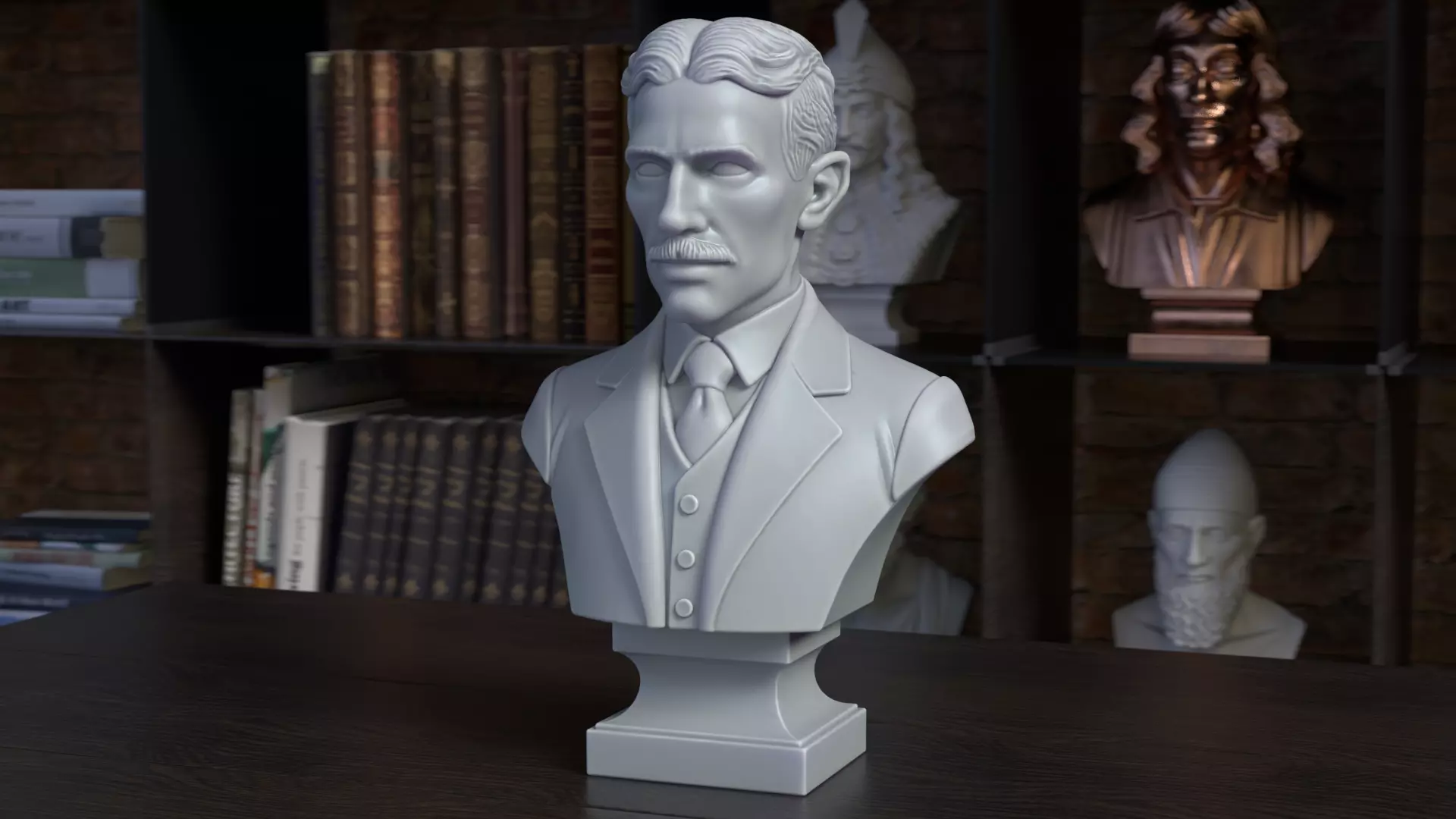This bust depicts Nikola Tesla, the legendary inventor and electrical engineer known for his groundbreaking contributions to alternating current and wireless technology. Sculpted with meticulous detail, the bust features Tesla’s iconic hairstyle, mustache, and formal suit, reflecting both his intellectual brilliance and timeless legacy. Set on a clean rectangular pedestal, this model is ideal for science enthusiasts, collectors, and historical figure displays.