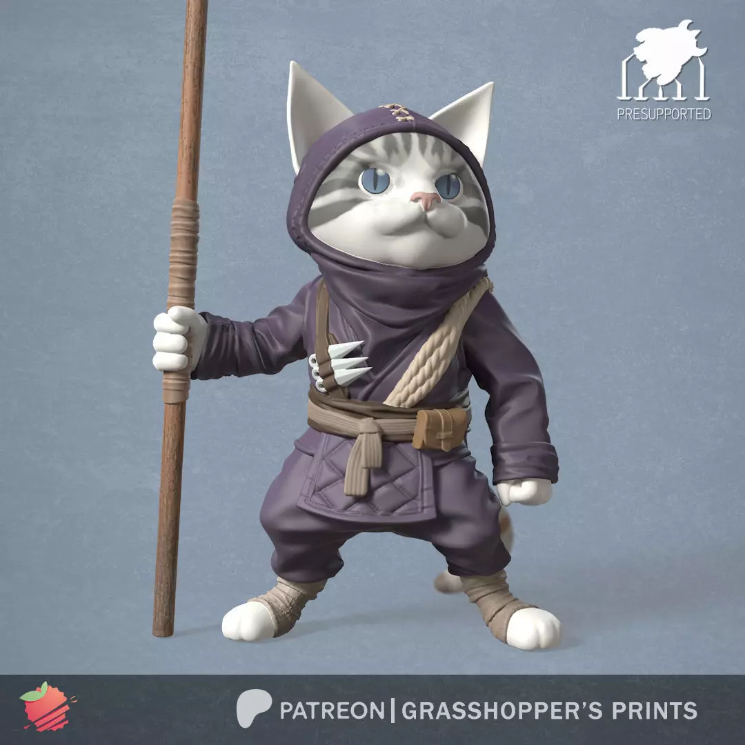 Hello everyone! Please welcome - Ninja Cats! This one is with staff. One of many cute design I make! This one is more complicated and interesting :) It is splitted to parts for your convenience. Unsplitted model also on board)