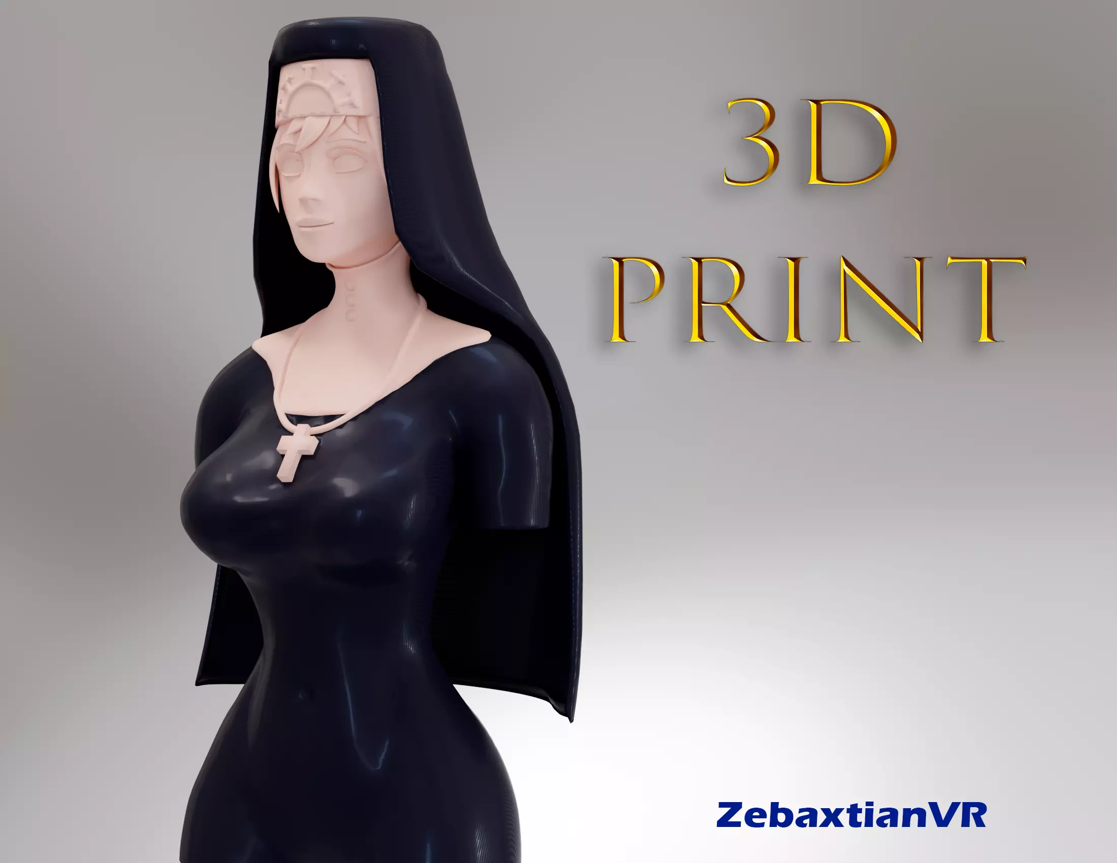 3d model nun inspired by skullgirls double, made 100% in blender.Includes all stl, blend, obj and fbx files for any use.The stl is ready to be printed at a recommended scale of + 4200%You can edit the original file to print the body and veil at the same time.Layers of 0.15> 0.18 are recommended to have good details, and number of layers: 4More info dm my instagram: https://www.instagram.com/zebaxtianvr/?hl=es-laIf you want to see more models visit instagram or my cgtrader profile with offers