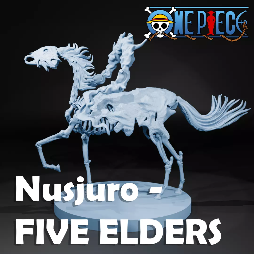 Nusjuro has acquired the power of a Mythical Zoan-type Bakotsu (馬骨?) Devil Fruit that allows him to transform into a bakotsu—a skeletal horse—and a human-bakotsu hybrid resembling a centaur at will. Nusjuro appears to have awakened this ability while maintaining his personality, as indicated by the ribbon of dark, flaming smoke around his shoulders and torso when he is transformed.[12] In such state, he could withstand a point-blank blast of fire from Sabo without difficulty.[13]