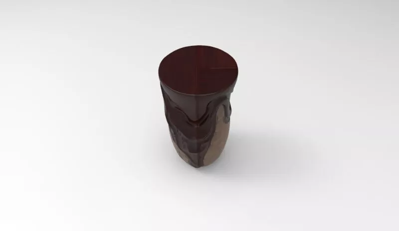This model is a centerpiece of modern digital craftsmanship. It showcases a unique dual-material aesthetic: the top half is covered in a rich, dark espresso-colored gloss that drips elegantly over a weathered, textured wooden base. The upper part mimics polished obsidian or dark chocolate with smooth, fluid ripples, while the lower part provides a rugged, tactile counterbalance. This vase is perfect for luxury interior visualizations, avant-garde CGI art galleries, or high-end architectural staging that requires a bold, artistic focal point.
