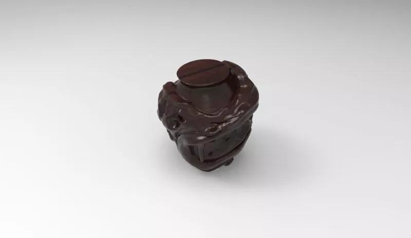 This model is a stunning example of contemporary artisan design. It features a sleek, dark wood finish (reminiscent of polished ebony or obsidian-stained oak) with a smooth, cylindrical upper body. The highlight of this piece is the sculptural flow texture that wraps around the center, resembling molten wood or organic liquid roots. Its high-gloss finish and sophisticated dark palette make it an ideal choice for luxury penthouses, executive offices, or high-end hotel lobby renders.