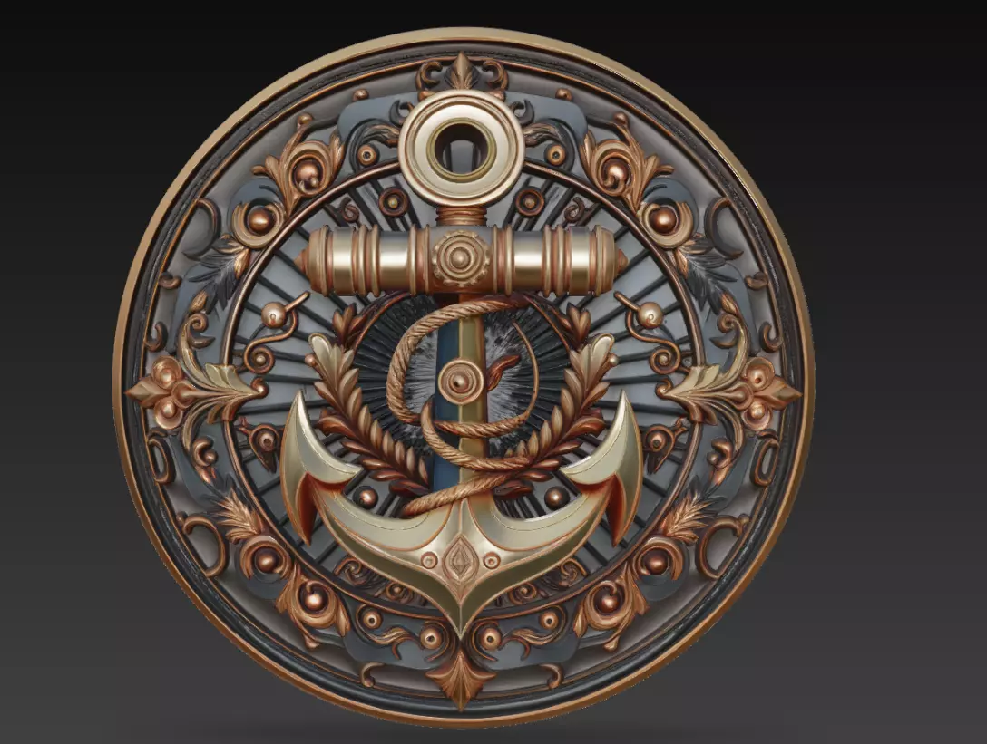 Discover the perfect fusion of maritime symbolism and classical artistry with the Ornamental Anchor Medallion 3D Model.This masterpiece blends the strength of a ship’s anchor with the refined elegance of Baroque design, surrounded by intricate floral scrollwork and symmetrical rope detailing.