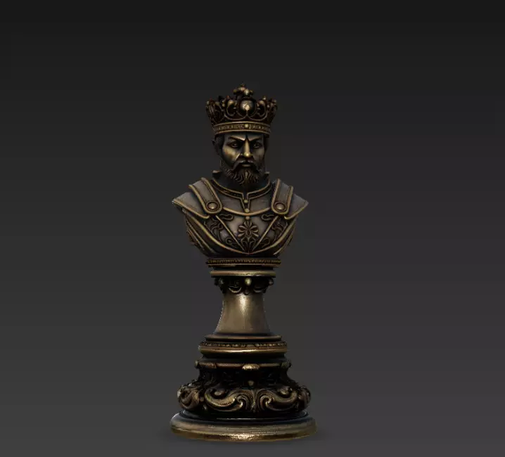 Ornamental Chess King Bust 3D Model features a powerful sculptural interpretation of the king chess piece designed as a royal bust statue.