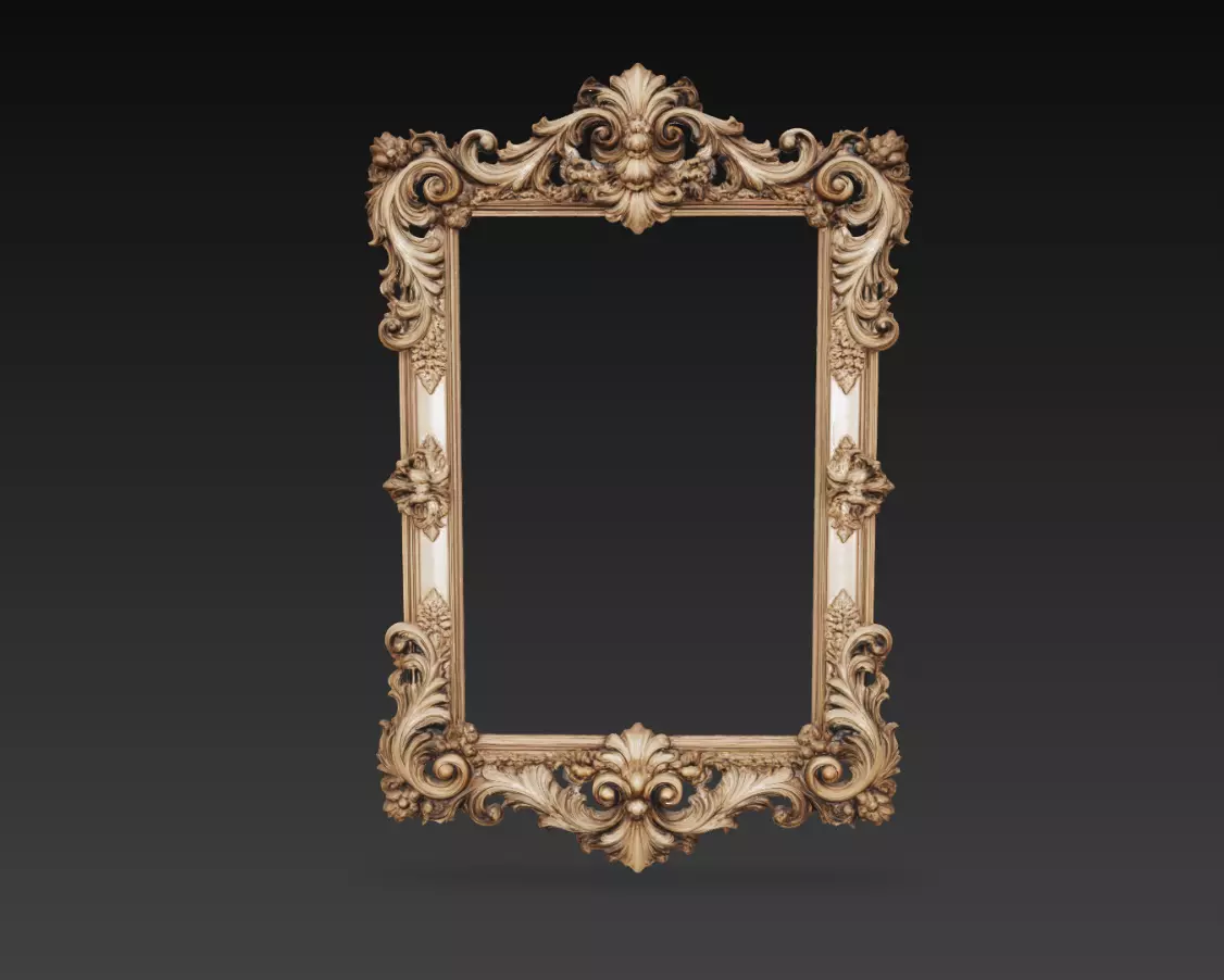 This Ornate Baroque Frame 3D Model features a highly detailed decorative border inspired by classic European design.