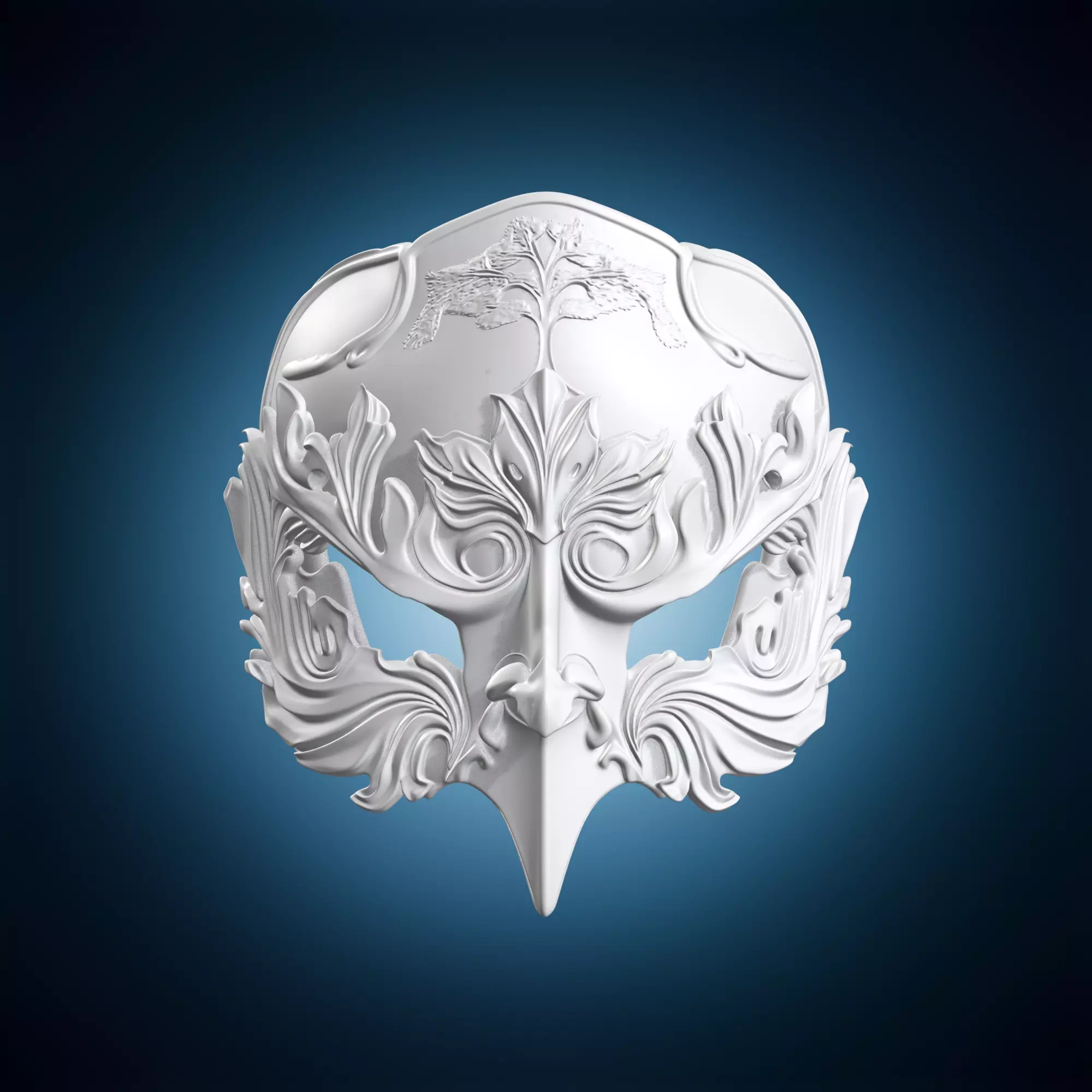 A majestic sculpture featuring an ornate leaf tree masquerade design. This intricate piece is made from various materials and showcases exceptional craftsmanship. The artist's use of texture and pattern creates a visually striking effect. Perfect for decorative purposes, this sculpture can add elegance to any room. The level of detail is impressive, with realistic branches and leaves that seem to sway in the breeze. The masquerade mask adds an air of mystery, inviting the viewer to contemplate its meaning. This unique piece is sure to be a conversation starter.