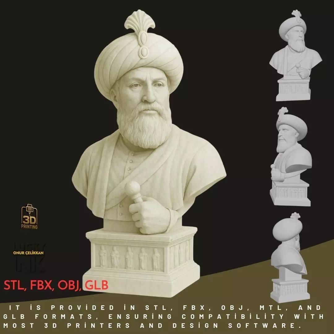 Detailed Description:A regal 3D model of an Ottoman Sultan, dressed in traditional royal garments including a turban and robe, standing in a proud and commanding pose. This figure blends historical richness with artistic elegance, ideal for collectors, historical displays, educational use, or game assets. Supplied in STL, FBX, OBJ, and GLB formats, and fully optimized for 3D printing with clean, watertight mesh.