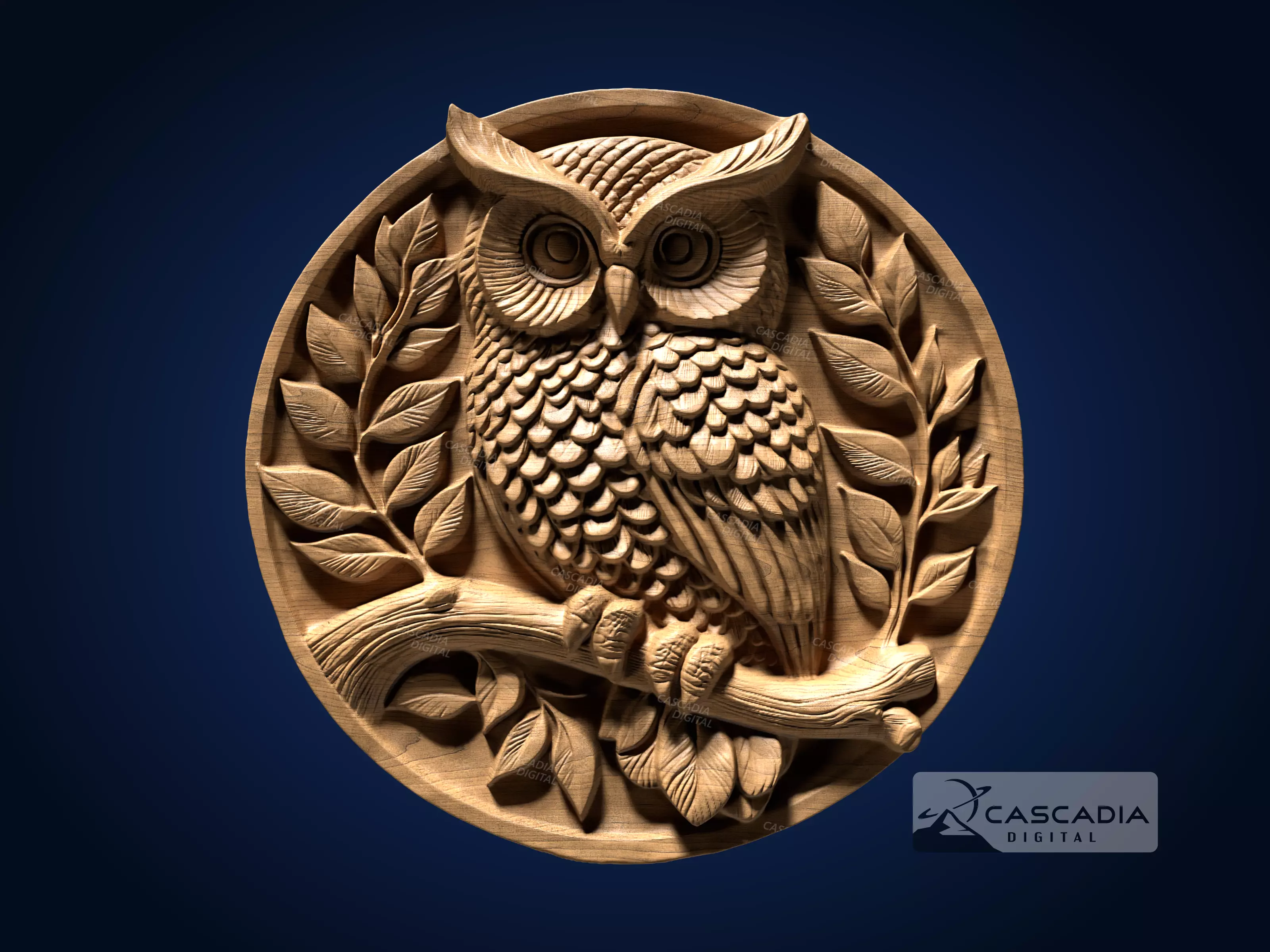 Owl Round - CNC Router Carving Casting animal wildlife 3D print model