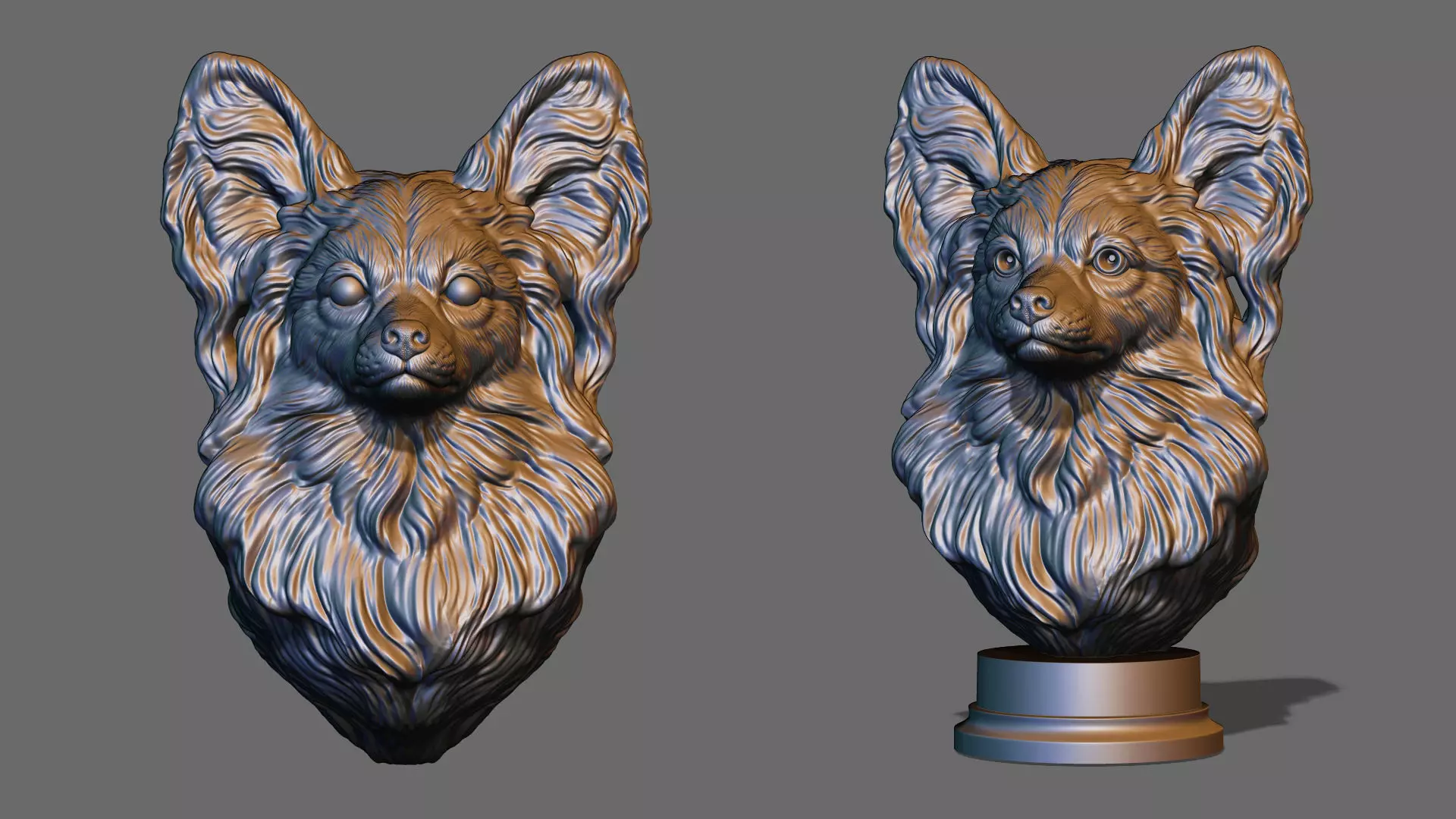 Merged Papillon Bust on Round BaseMerged Papillon Bust Flat BottomMerged Papillon Bust Flat BackSeparated Papillon Bust on Round Base & Keyed (2-Part Assembly: Body, Base)