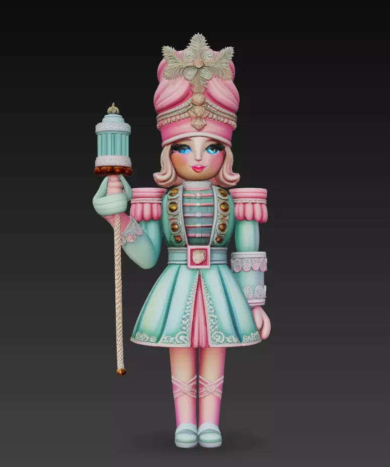 This Pastel Nutcracker Princess 3D Model blends fantasy and festive elegance in a stylized collectible format. With mint and pink tones, ornate gold details, and a birdcage-topped staff, this regal figure evokes whimsical charm and seasonal sophistication. Perfect for holiday decoration, 3D printing, or digital winter scenes, it’s ideal for collectors, artists, and fantasy-themed Christmas projects.