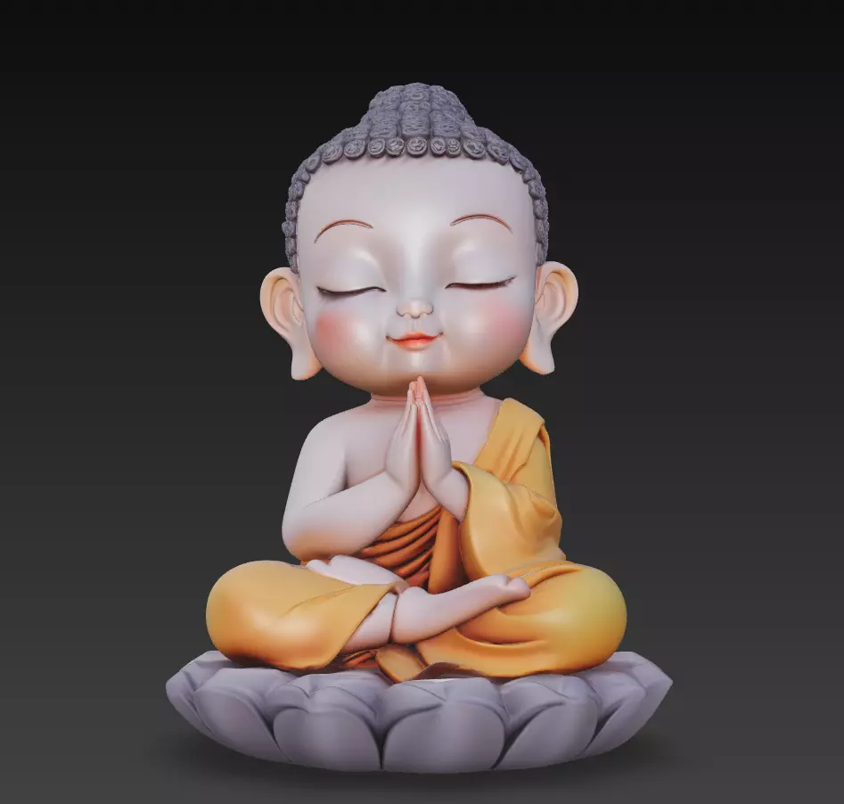 A heartwarming Baby Buddha sculpture sitting in a meditative lotus pose, symbolizing peace, innocence, and enlightenment.This high-quality stylized model features soft surface transitions, detailed facial serenity, and perfectly balanced proportions — ideal for spiritual decor, CGI rendering, or 3D printing projects.It embodies calmness, mindfulness, and the gentle light of inner harmony.