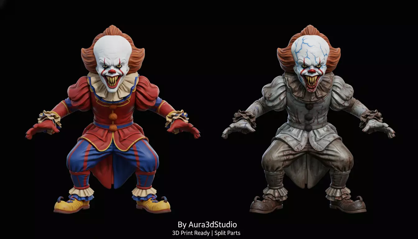 We all float down hereBring the terror of Derry to your collection with this highly detailed Pennywise the Dancing Clown - Monster Edition. This premium 3D printable set is sculpted with precision, capturing the menacing essence of the character from the blockbuster IT films.